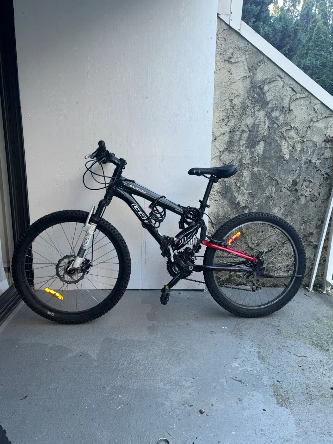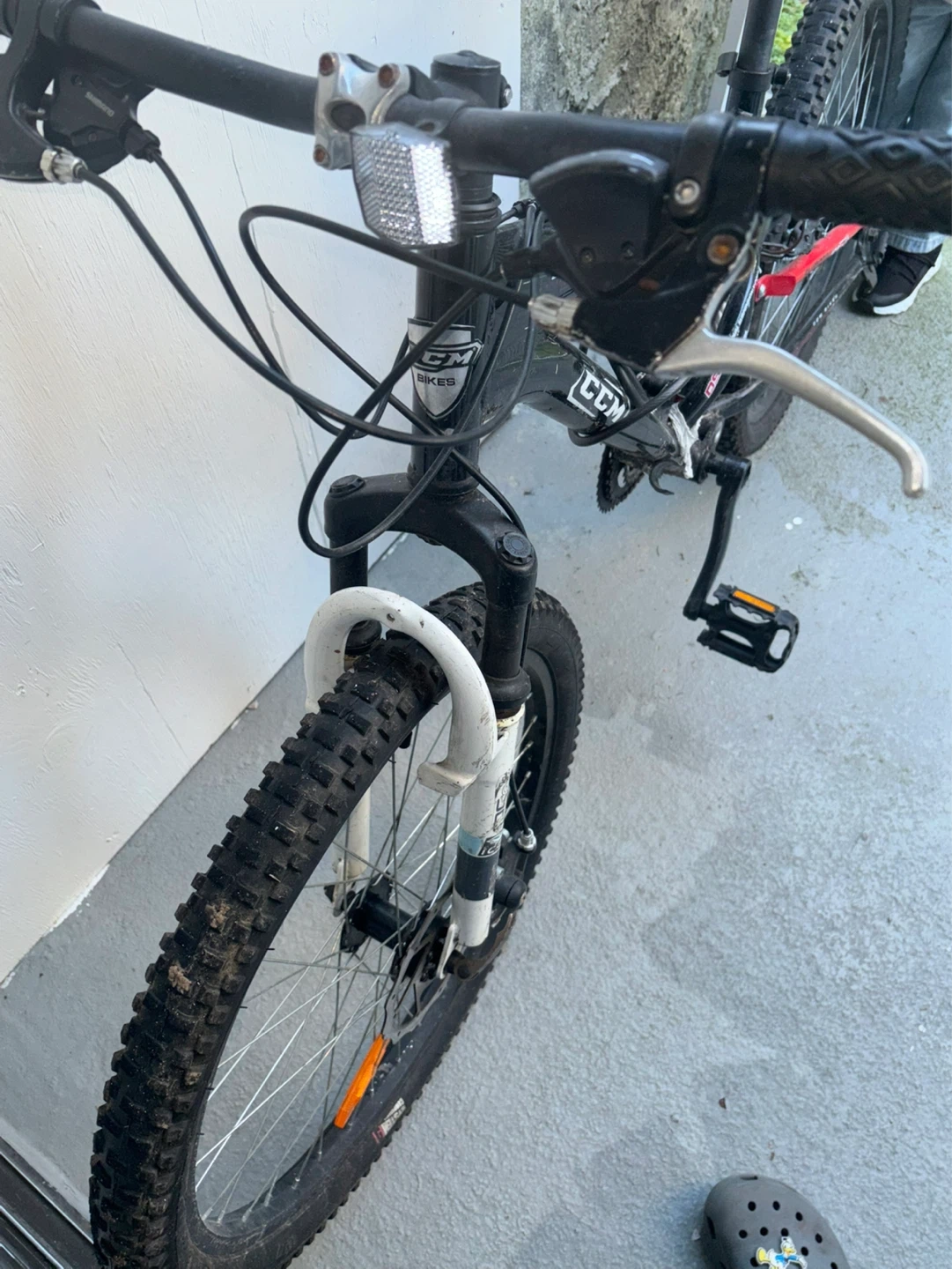 This is a CCM Bikes mountain bike. It's black with disc brakes and has Shimano gears. Ready for your next trip! In perfect condition and you can negotiate