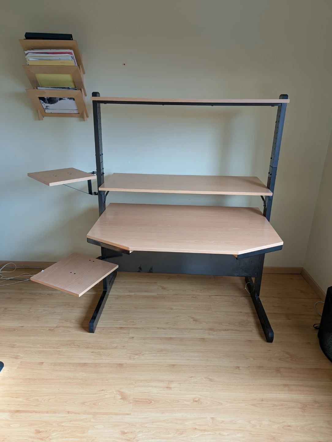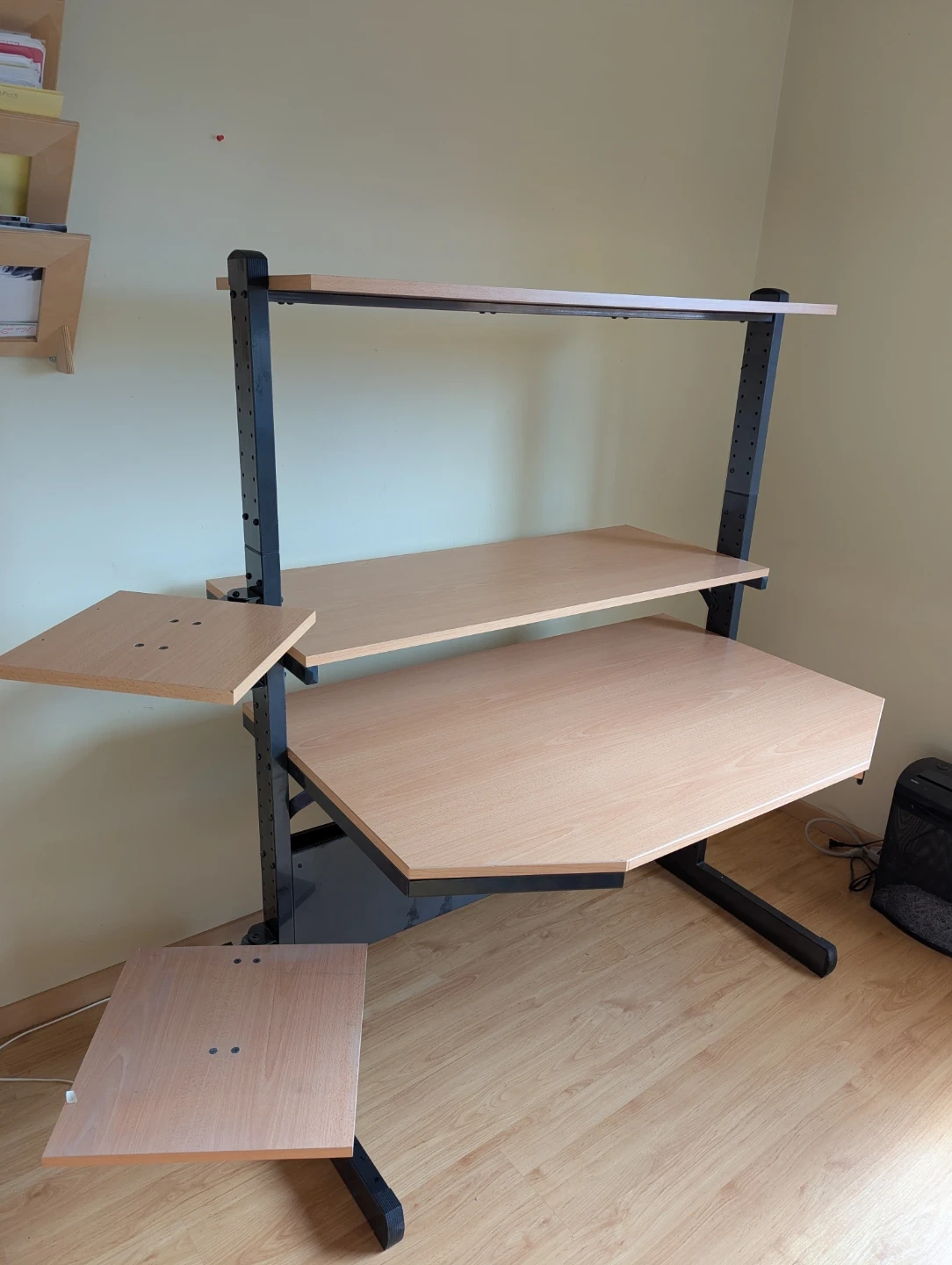 - Adjustable desk height and adjustable top shelf