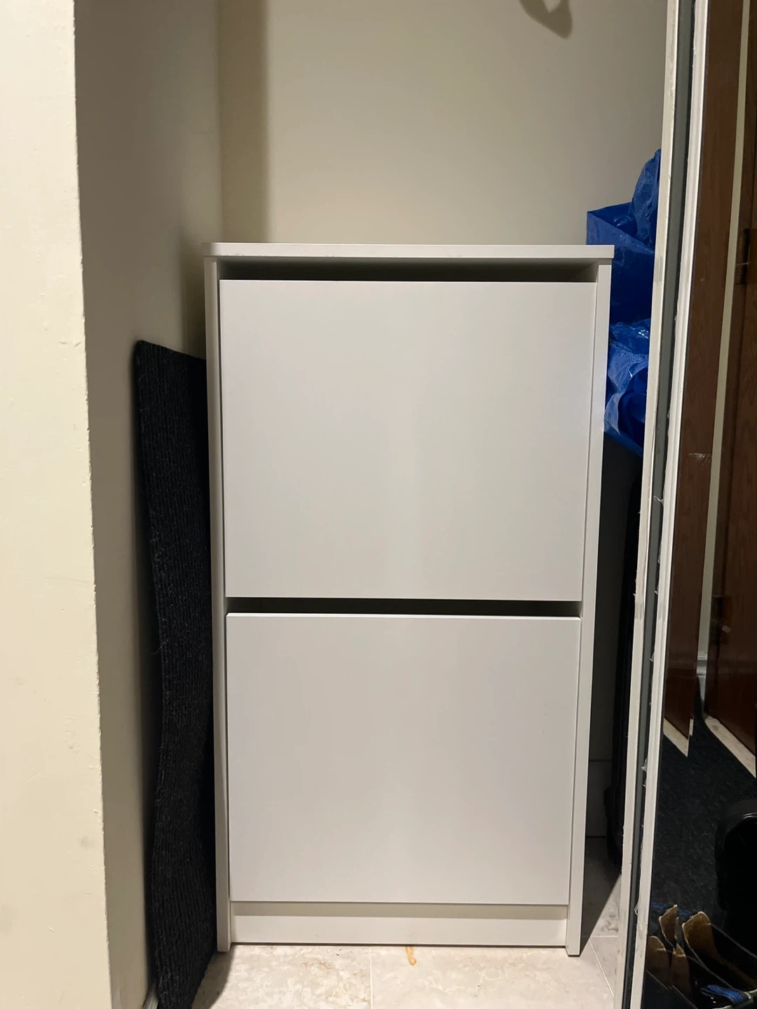 This white shoe cabinet from IKEA has two flip-out drawers for storing shoes. It's a great way to keep your entryway tidy.