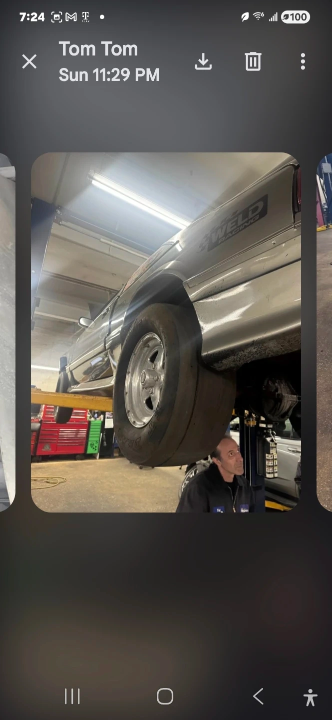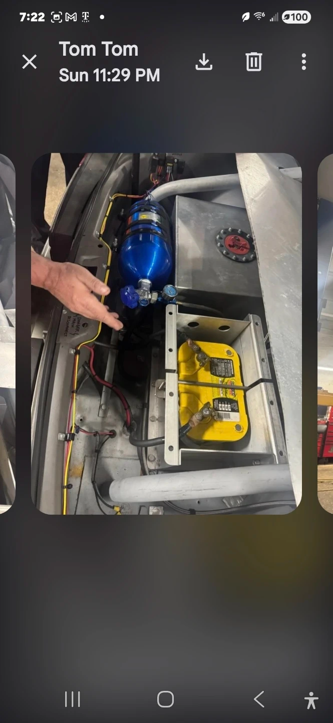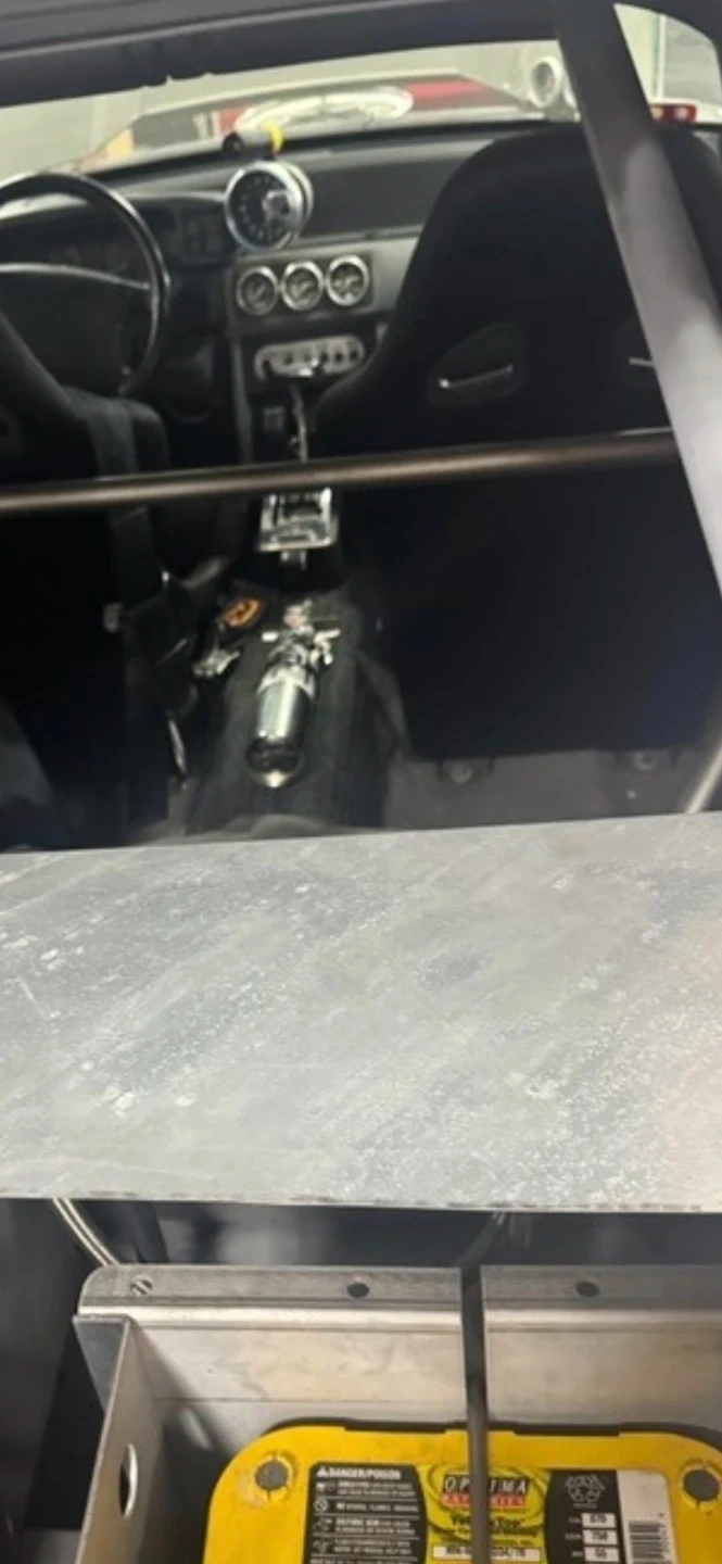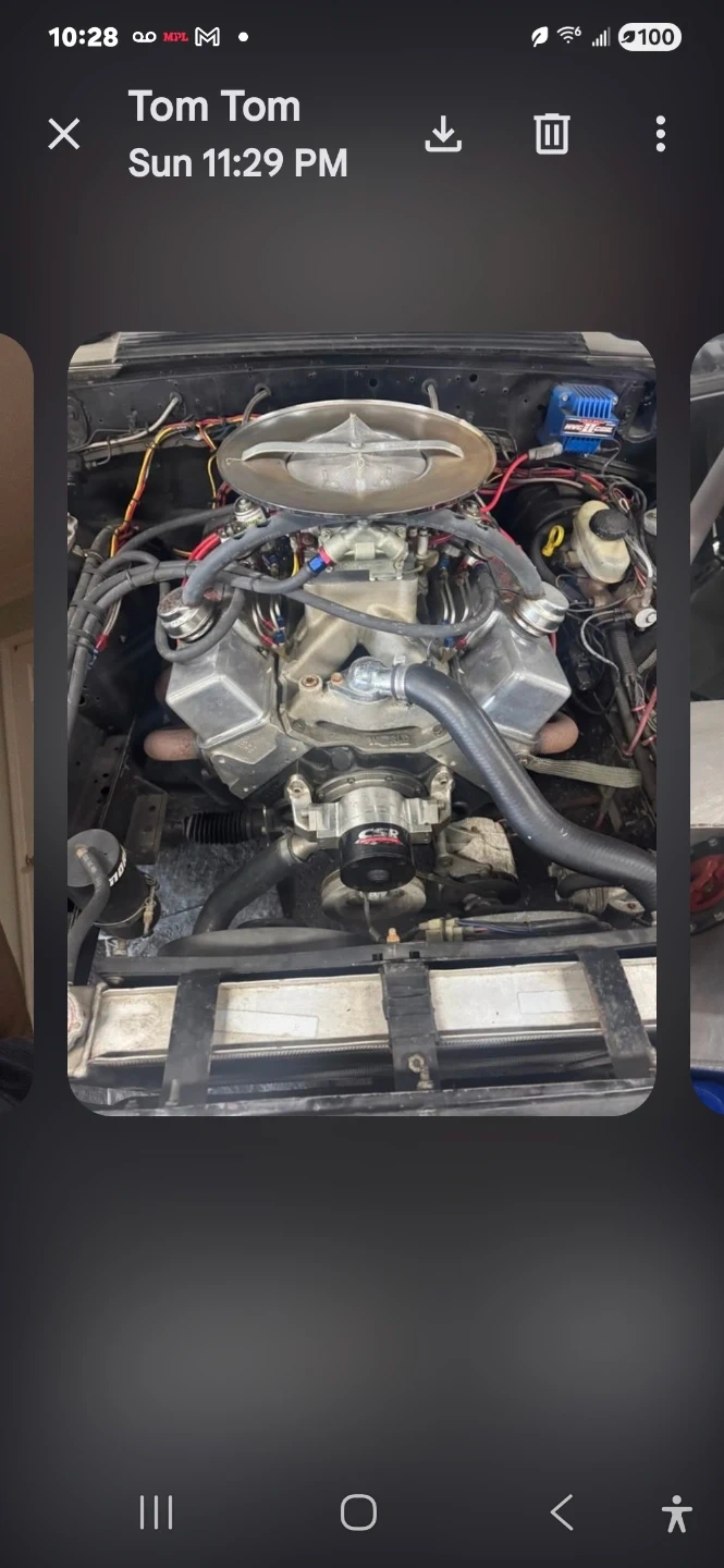 Customized Ford Mustang GT from the 1987-1993 model years. This vehicle has undergone a significant engine modification. It features a roll cage and racing seats, indicating a performance-oriented build. The engine bay is filled with aftermarket components and a nitrous oxide system. This is a 7 second car powered by big block Chevy worked to bllllls