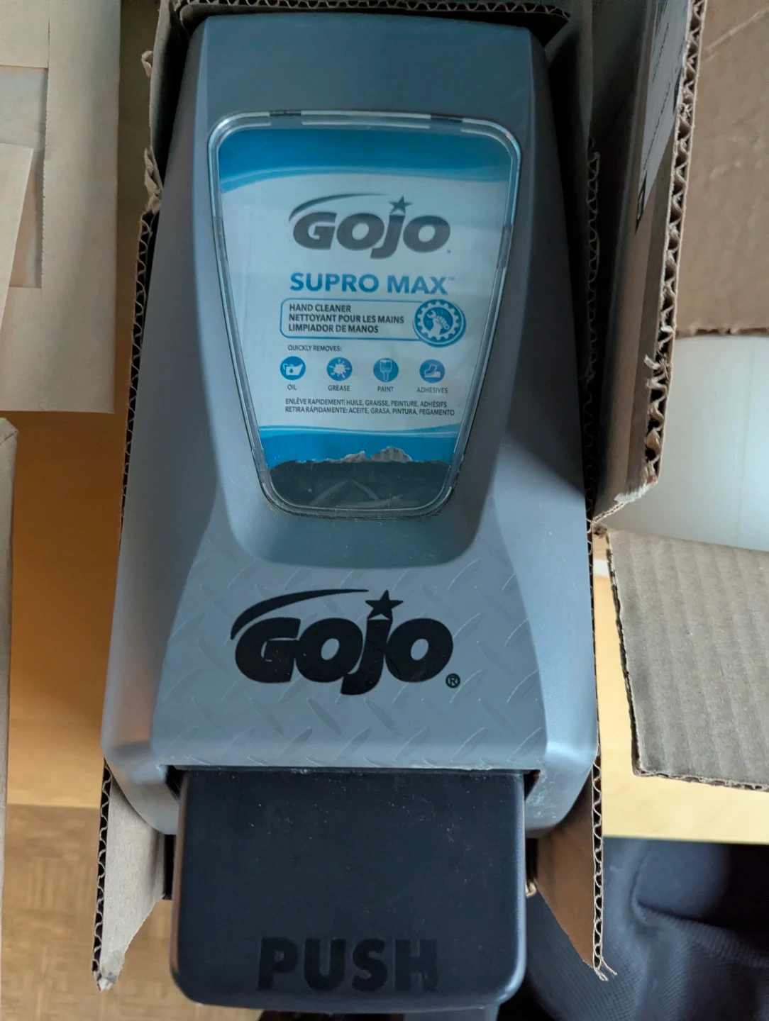 Purchased from Uline. Soap refills can be purchased through most supply office supply places.