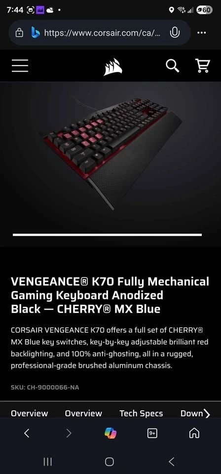 Corsair Vengeance K70 Gaming Keyboard - Cherry MX Blue