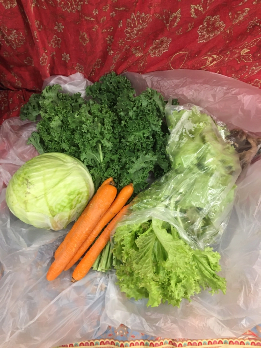Fresh Vegetables: Cabbage, Kale, Carrots, and Lettuce