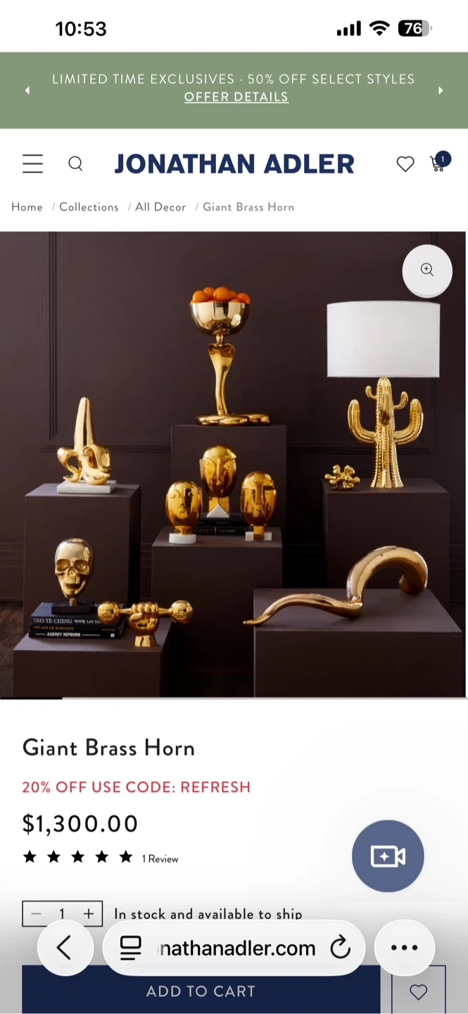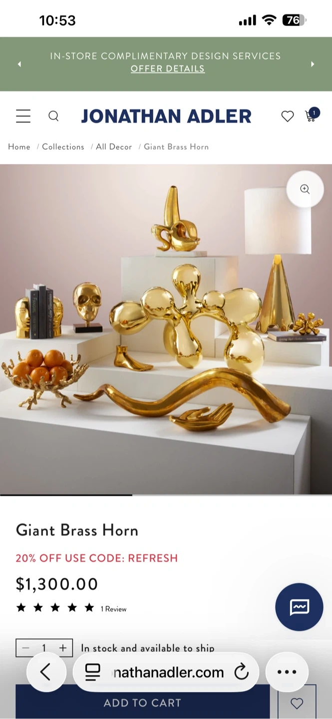 Jonathan Adler Giant Brass Horn Sculpture
