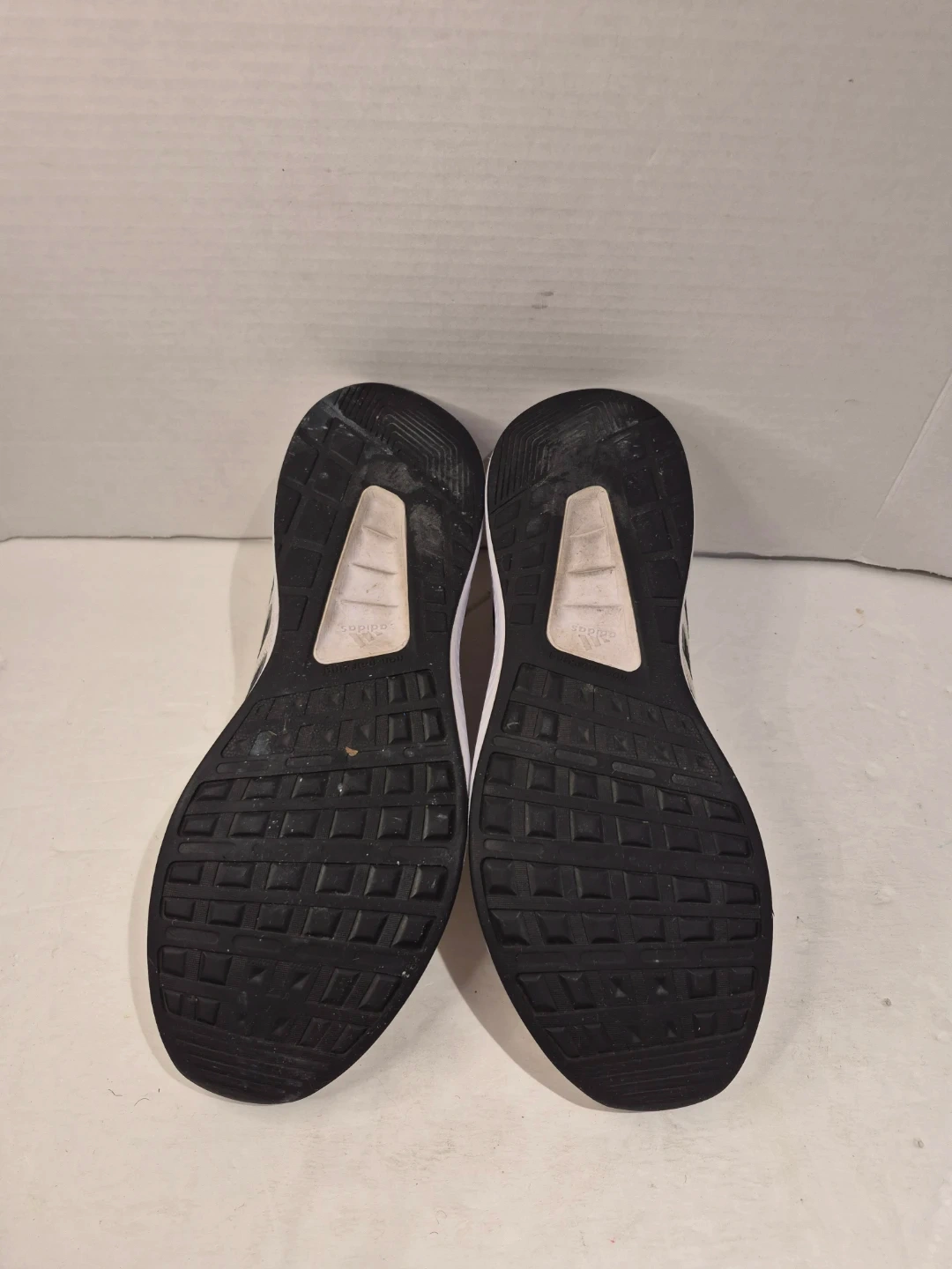 These Adidas running shoes are white with black accents. They feature a breathable mesh upper and a durable rubber sole. These shoes are great for everyday wear or light jogging.
