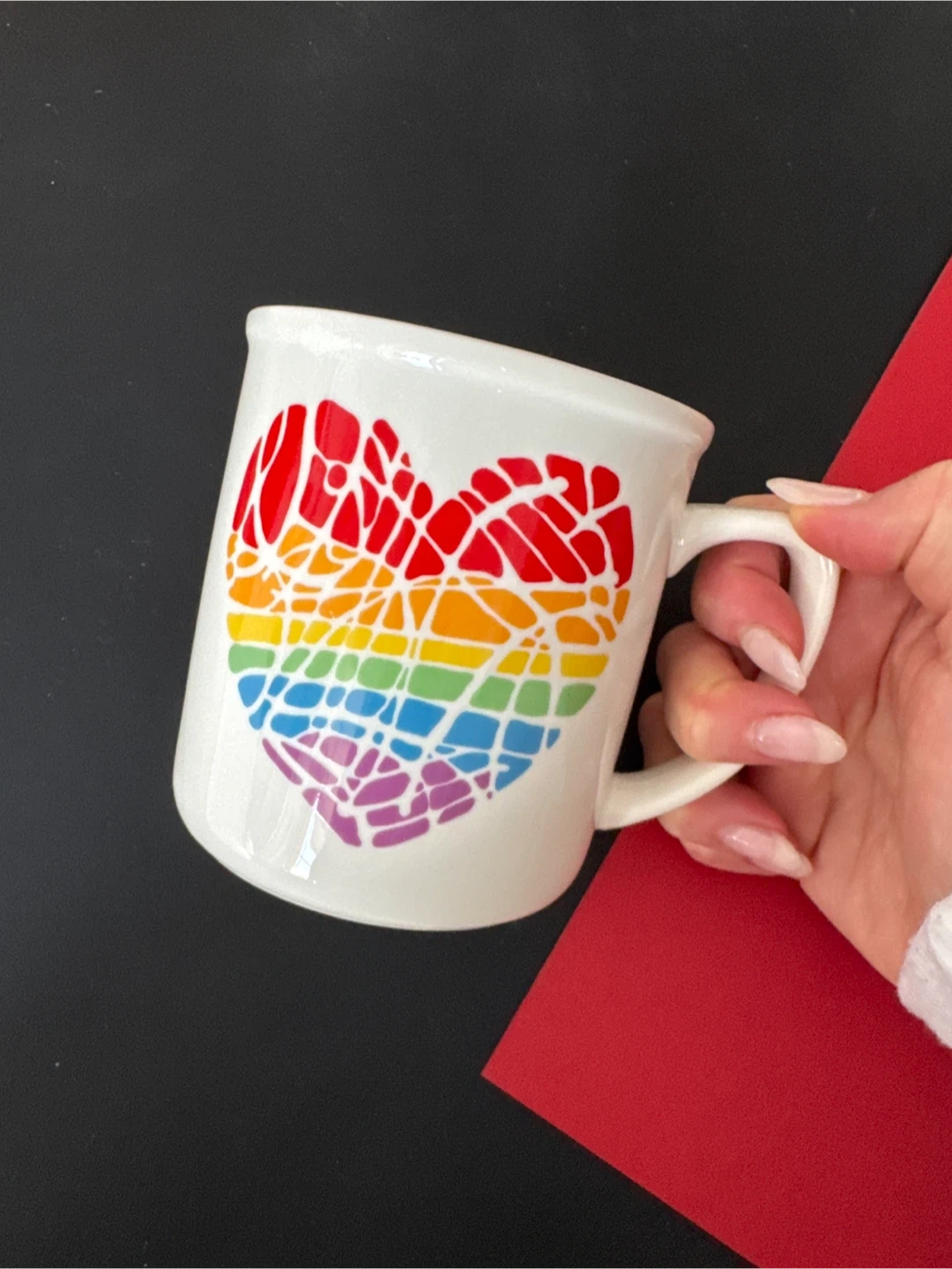 Kris Ruff Abbot, Rainbow Heart Mug LARGE, Valentine Gift 🏆