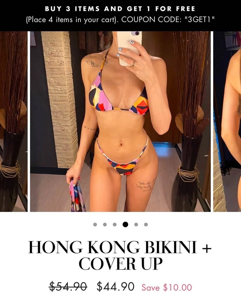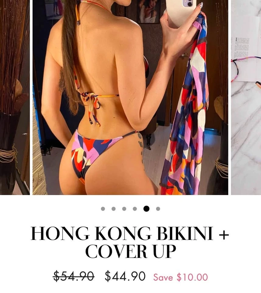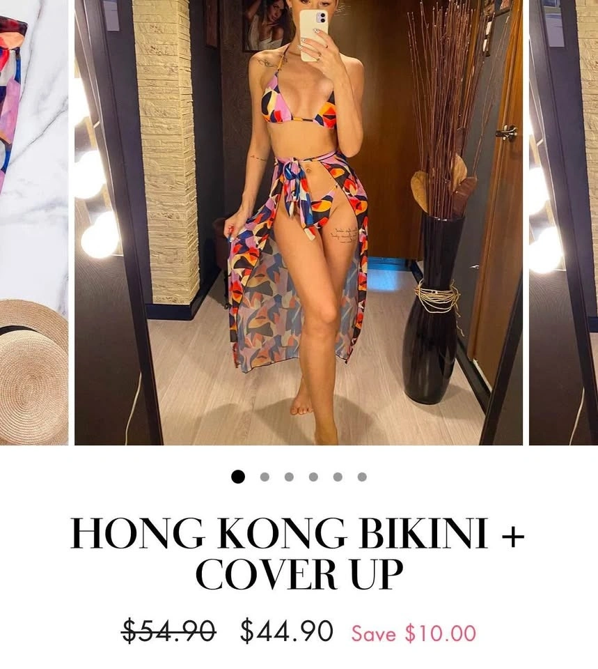 Pretty bikini set with cover-up. Size small. The bikini bottoms were too low cut for me. Worn only for trying on, with underwear and protective liner still in place. Currently on sale for $45 USD, usually $55 USD. Pickup only.