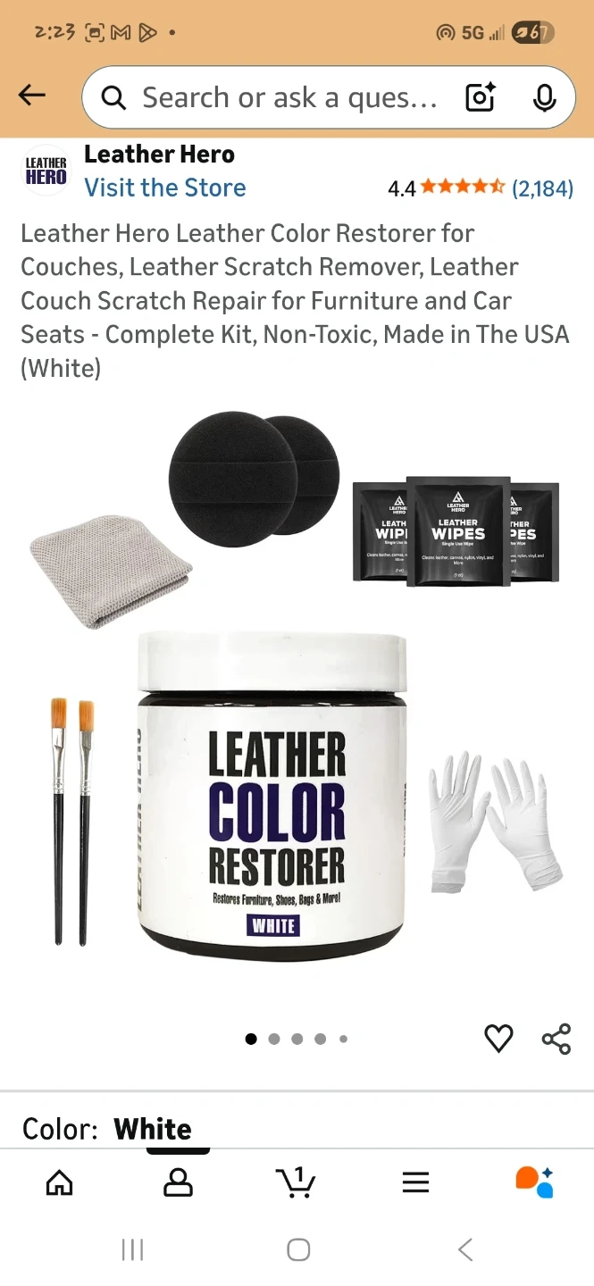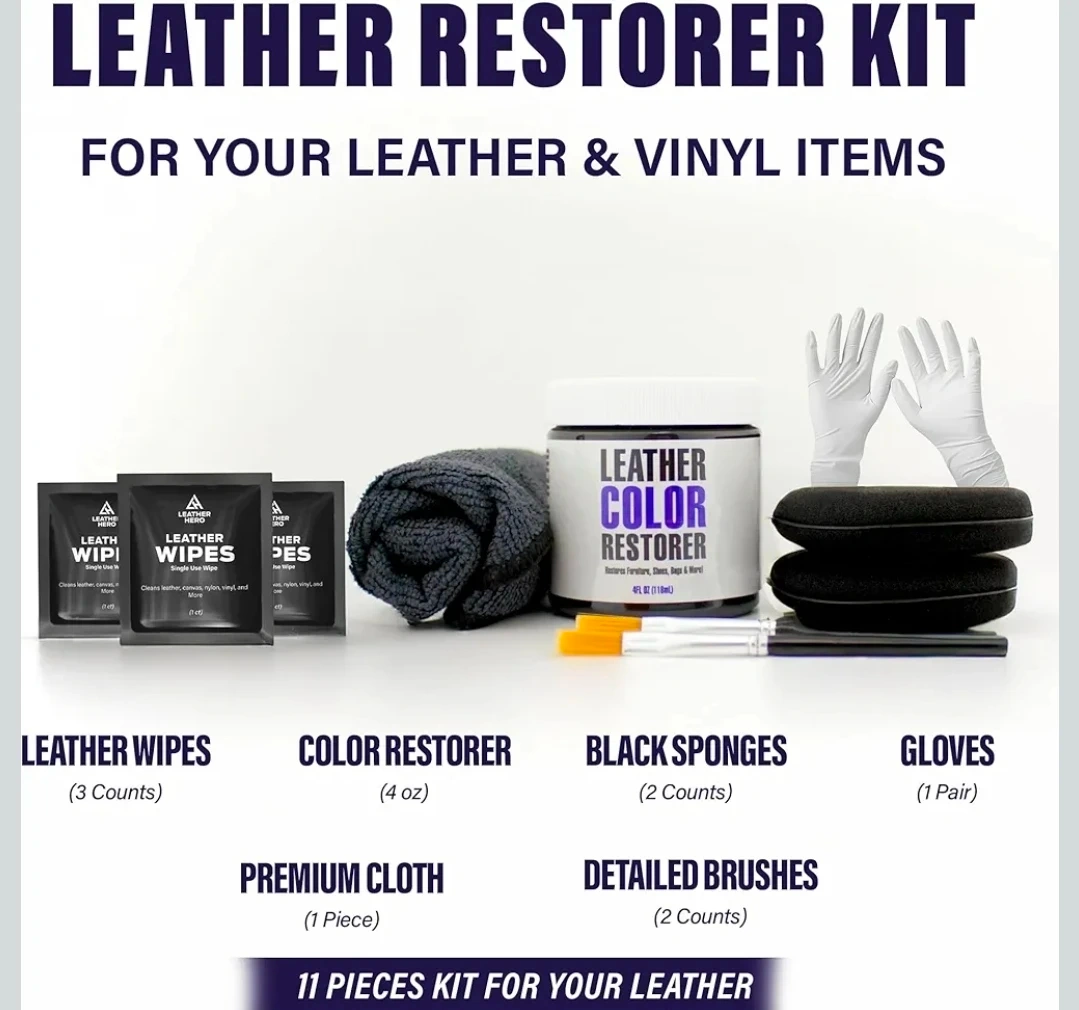 This kit restores the colour of couches, leather, vinyl, shoes, bags, and more. It's non-toxic and includes leather wipes, applicator sponges, gloves, a premium cloth, and brushes. The color restorer is 4 oz (118ml).