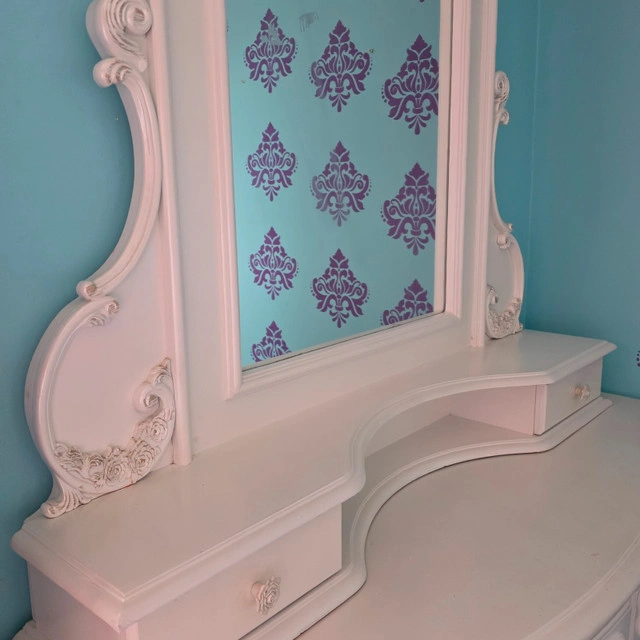 Girls Fancy White Mirrored Dresser With Matching Nighstand