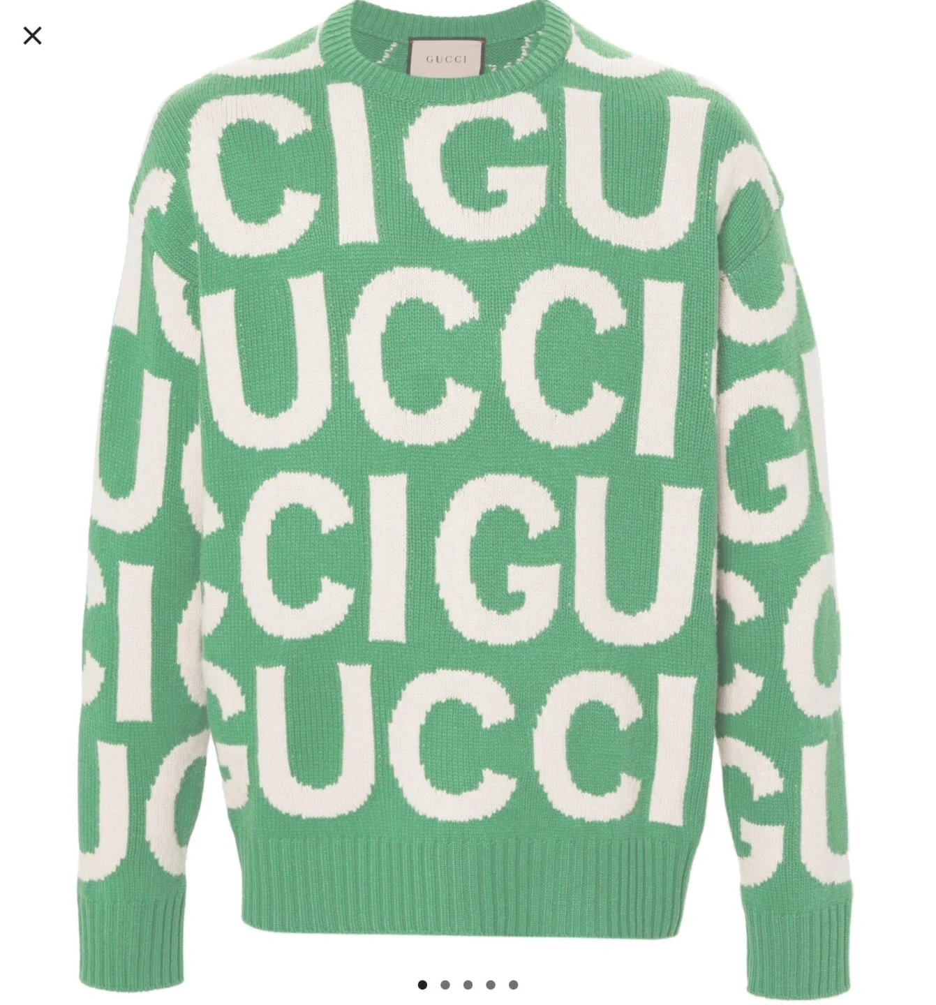 Selling a Gucci logo-intarsia wool jumper in a vibrant green and white colourway. This stylish piece is made from high-quality wool and features the iconic Gucci logo throughout. Originally bought for $2,700. A great addition to any wardrobe!