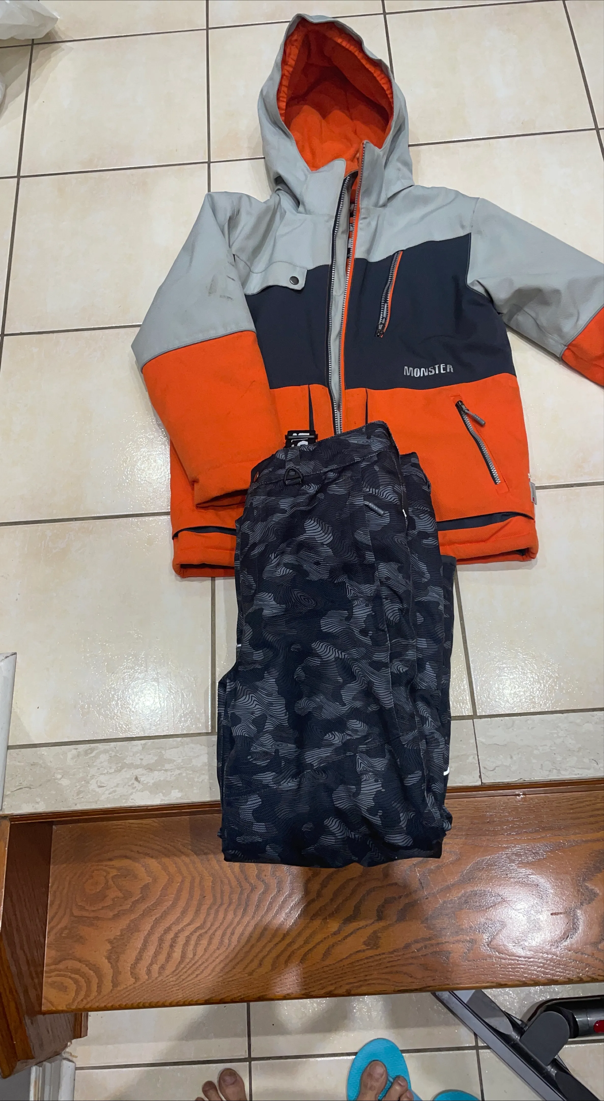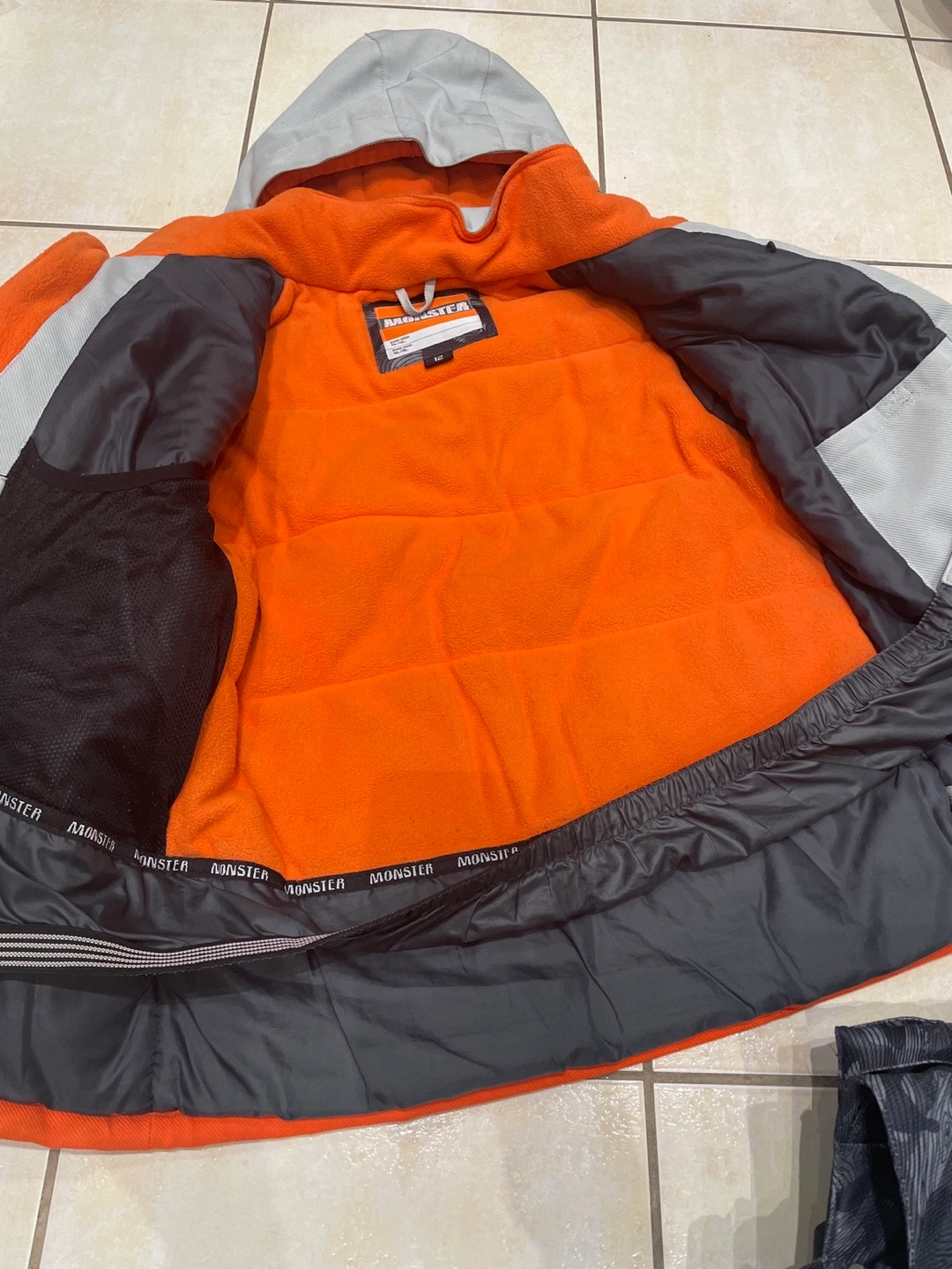 Selling a Monster brand ski jacket and pants set.