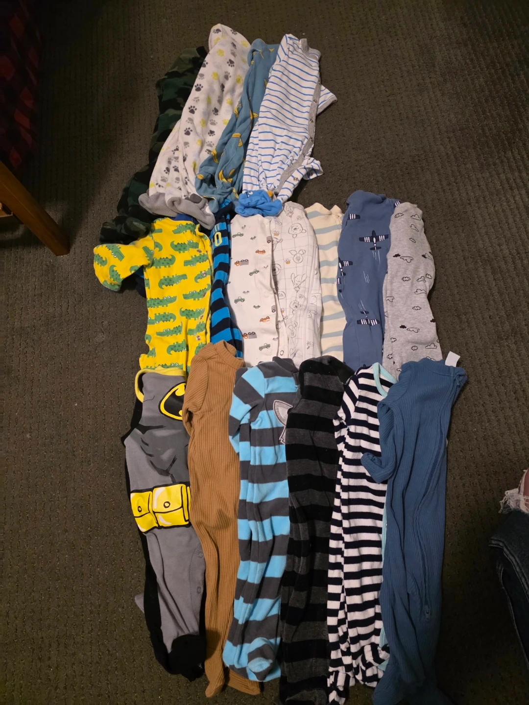 A mixed bundle of baby clothes including sleepers, undershirts, pants, a swimsuit, and outfits. It also comes with sleepsacks and receiving blankets, plus a cute crab-print hat. Perfect for outfitting your little one with a variety of essentials!