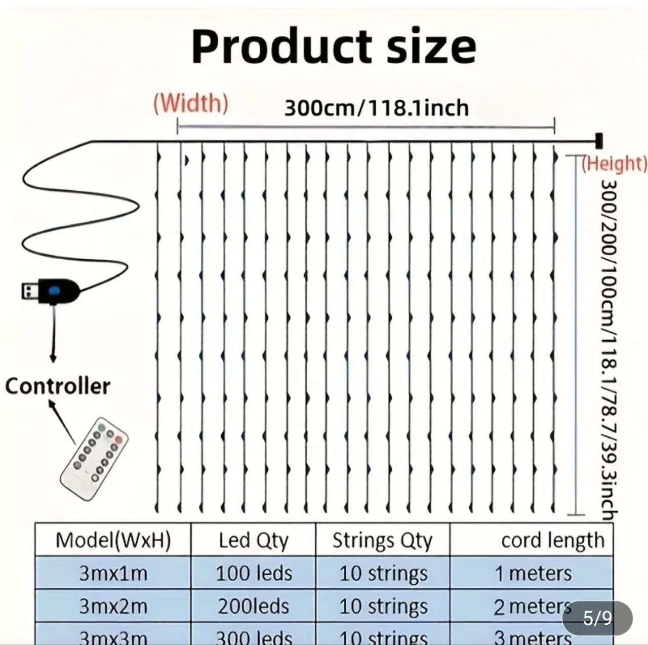Includes 10 strings and 100 LEDs.