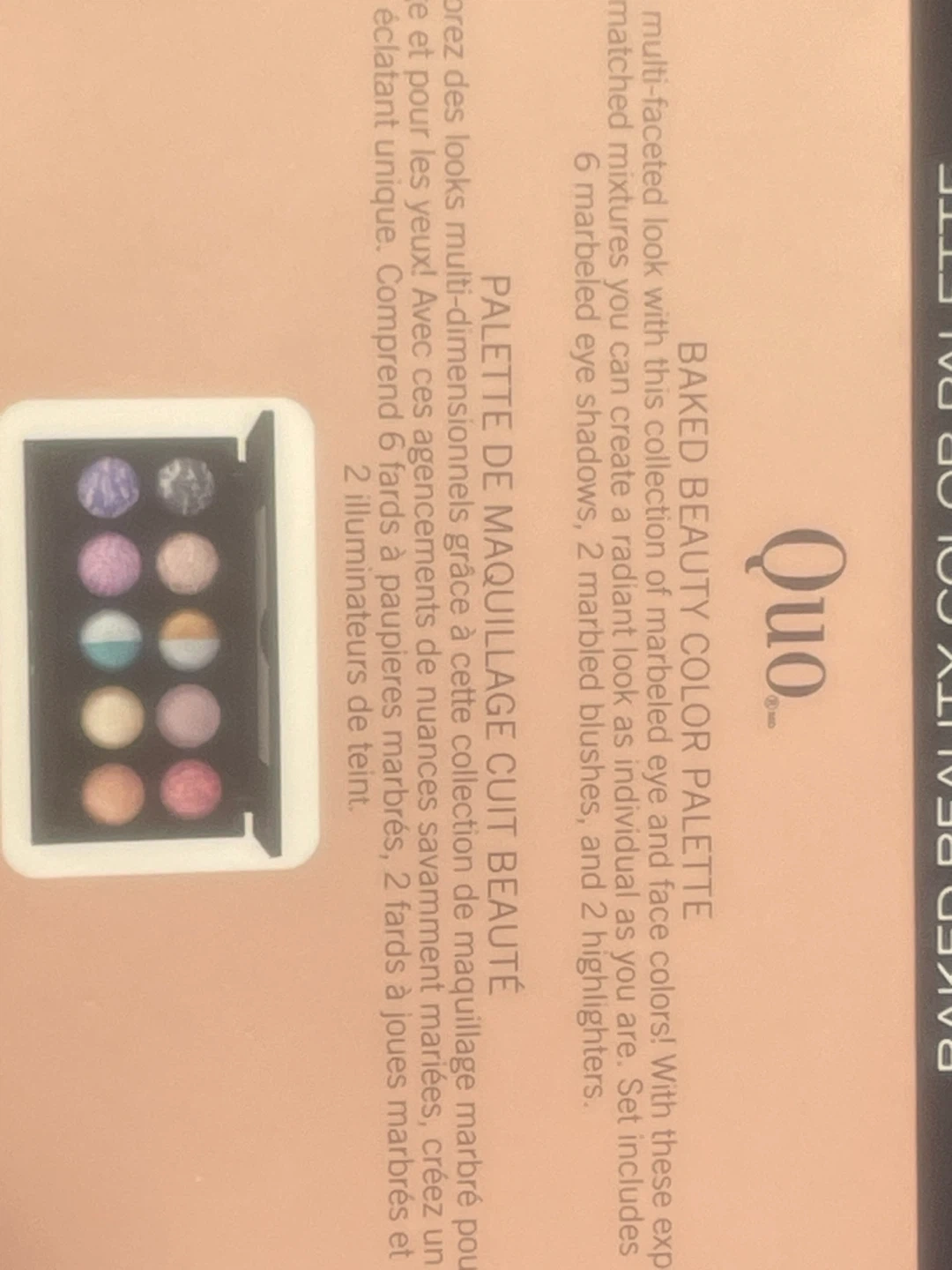 This baked beauty color palette from Quo features expertly matched mixtures to create multi-faceted looks. It includes 6 marbled eye shadows, 2 marbled blushes, and 2 highlighters. Individual pans are 2.3g each.