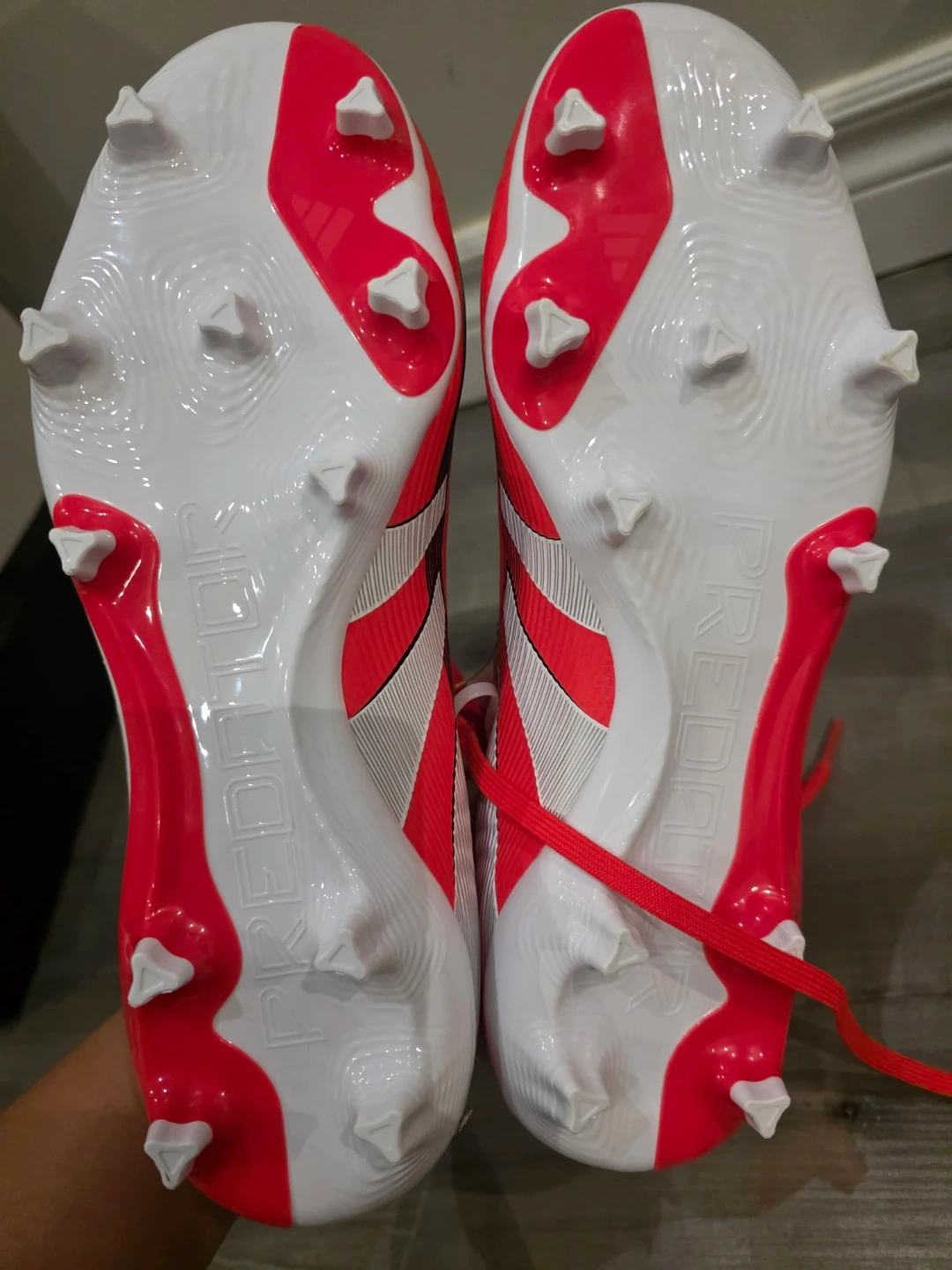 Brand new red Adidas Predator football/soccer cleats. These cleats are a women size 7 US (40 EU). They're designed for performance on the field. Great for soccer players of all levels!