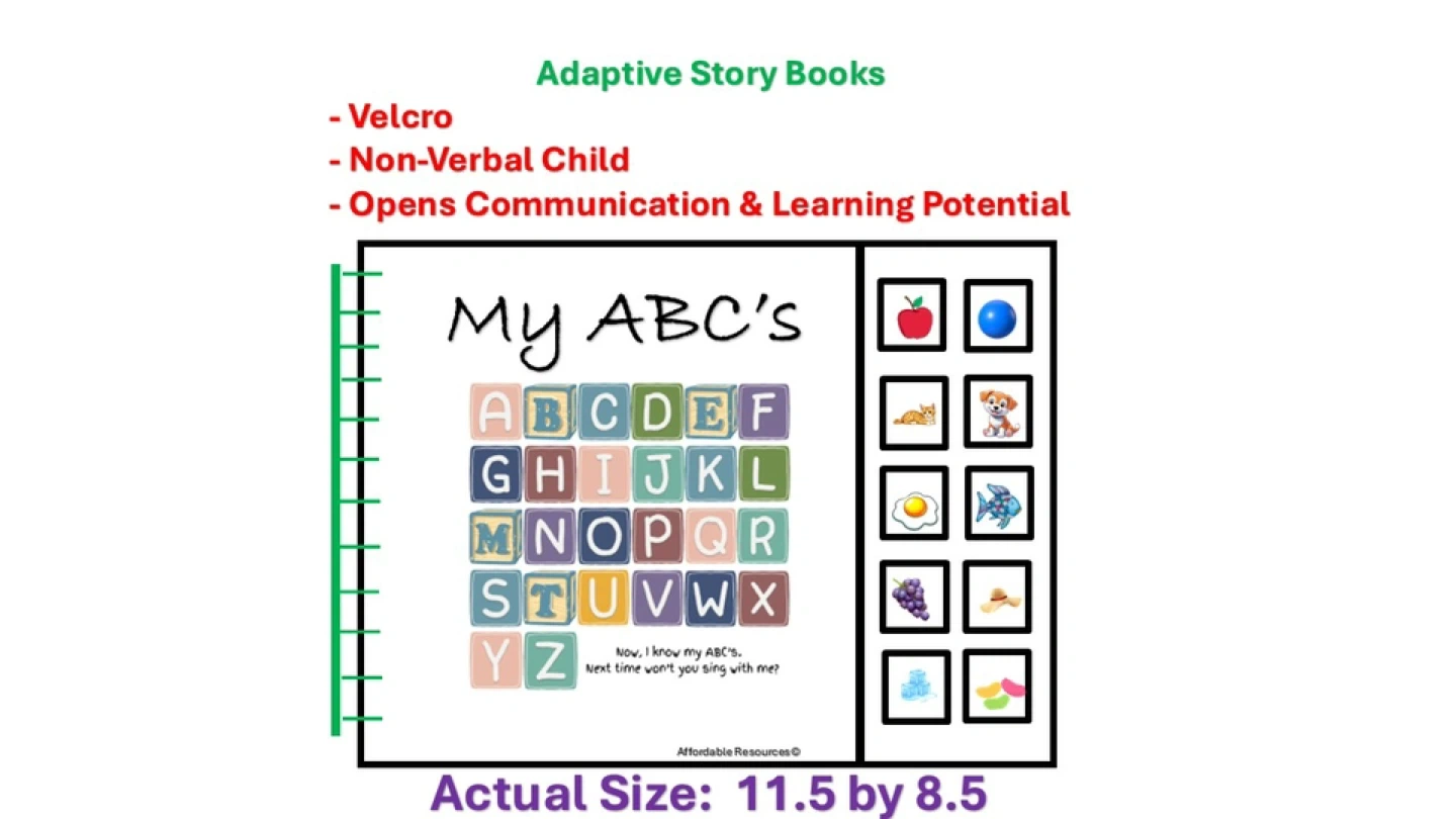 124These stories are geared towards non-verbal, autistic, learning disabled, dyslexic etc… child, opens the world of communication and learning, as well as toddlers to jump start their road to learning. Actual Book Size: 11.5 by 8.5 Benefits of these books are opens communication, opens learning opportunities, increases engagement, increases and develops language skills, increases comprehension, develops fine motor skills, develops social and emotional skills, ability to learn and learn new things, and learn routines and how to follow thing. Learn about the world and how to engage in it. Options and Costs: #1 buy PDF put book together yourself to save money $5.00 each. #2 Pick Up the Book $12.00 each. #3 Book Plus Shipping $12.00 + Shipping Costs to Your Location. Message to place order and method of payment is E-Transfer or PAYPAL. Titles Available are: I SPY Colours I SPY Shapes 2D/3D I Can Count 0-25 NAME Visits the Farm My Letter Aa Book (A-Z) My ABC’s More added daily. Check out my Facebook page @ Affordable Teaching Resources