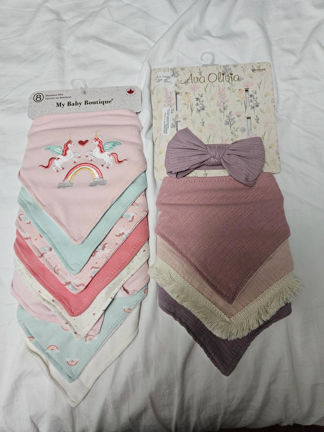 37I'm selling two brand new sets of baby bibs! One set is from My Baby Boutique and includes 8 bibs with adorable unicorn and rainbow designs. The other set is from Ava Olvia and features 5 bibs in various shades of pink and purple, with a cute matching bow. Perfect for keeping your little one clean and stylish! PICK UP: WESTON ROAD AND MAJOR MACKENZIE