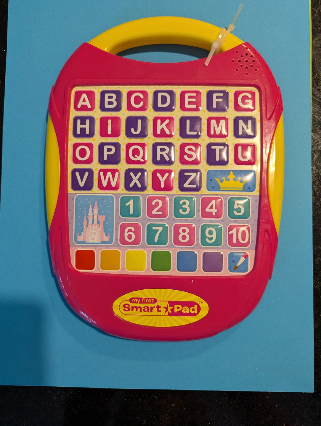 This is a fun and educational toy for little ones! It's a 'My First Smart Pad' with colourful buttons featuring the alphabet, numbers, and pictures. It's in great shape and ready for a new home to help a child learn and explore! Hardly used, SFH. In great condition
