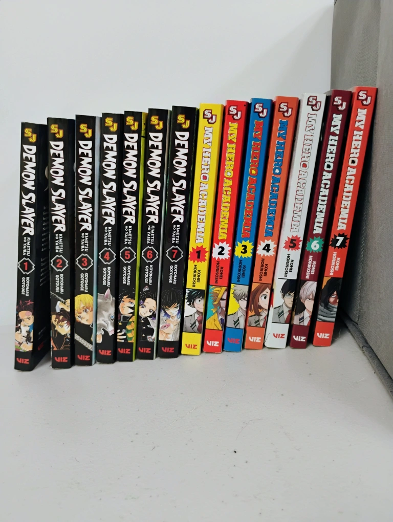 Selling a set of My Hero Academia and Demon Slayer manga books. Great for any fan of these popular series! All books are in giftable/like new condition and ready for a new home. Perfect for starting your collection. 7 Demon Slayer mangas new would cold about $90.65 plus tax, 7 My Hero Academia mangas would cost about $111.93 plus tax. This is a great deal, as these books all look brand new.