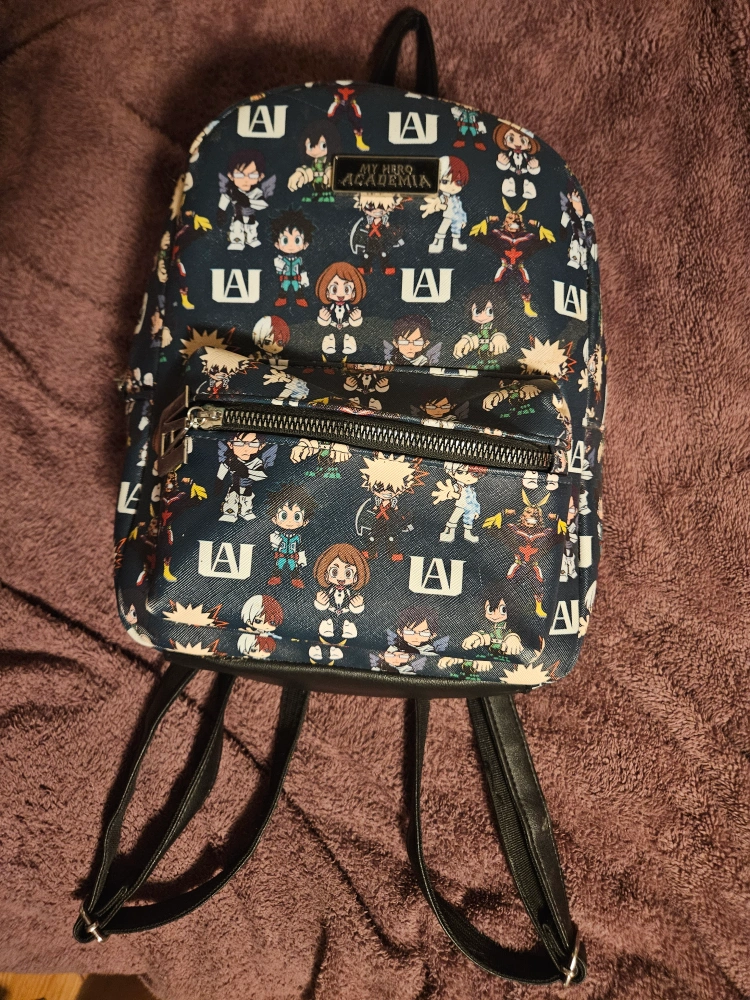 Here's a cute mini backpack featuring characters from My Hero Academia! It's perfect for carrying your essentials while showing off your love for the series