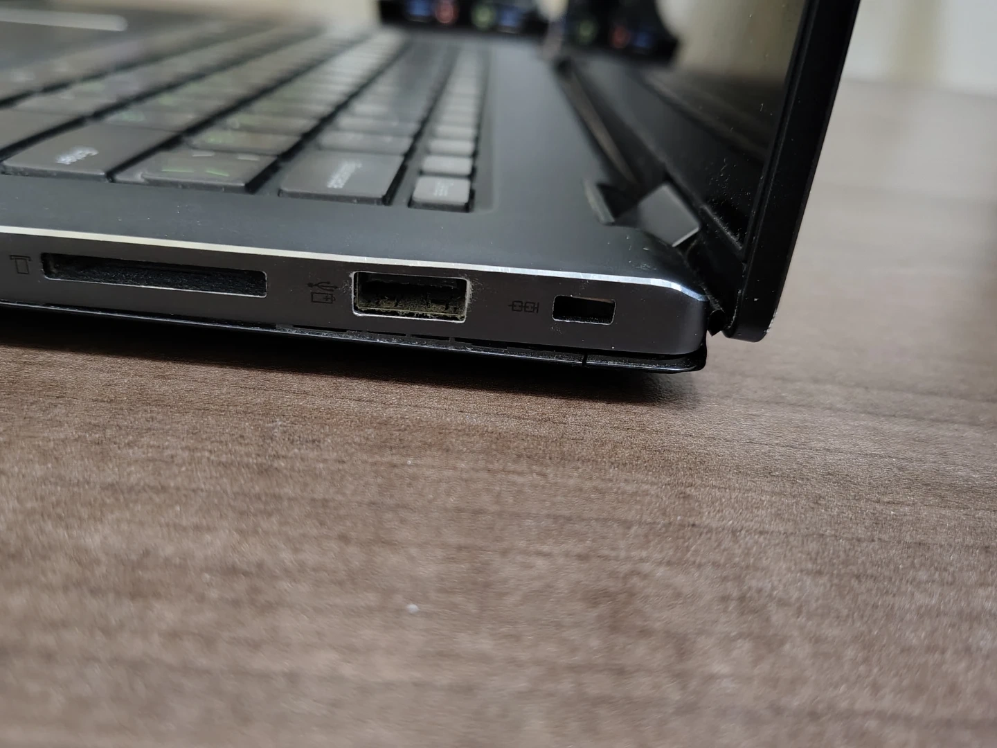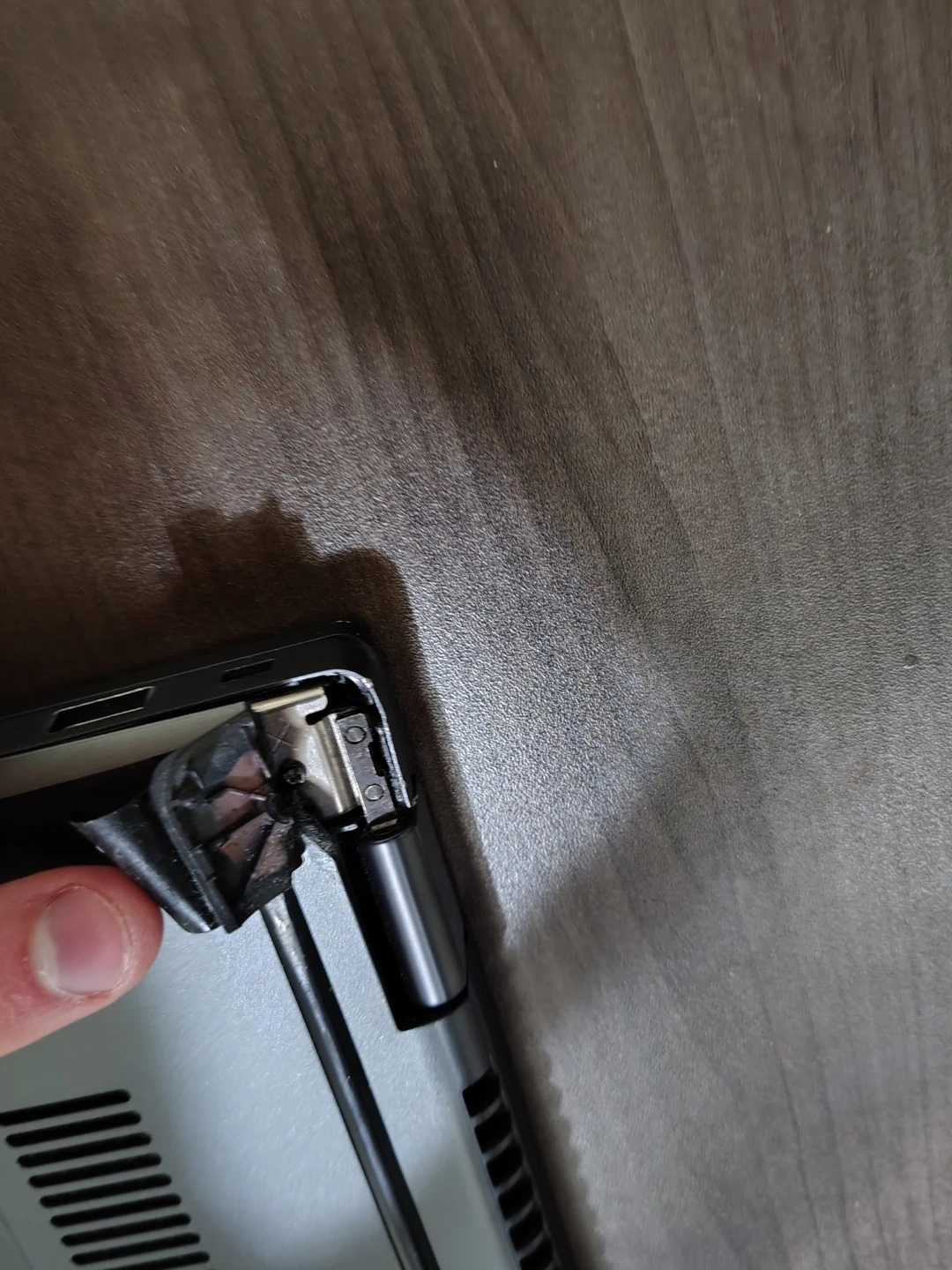 The right-side hinge panel is cracked and came loose, but it has been secured with tape. This does not affect performance in any way — the laptop works perfectly.
