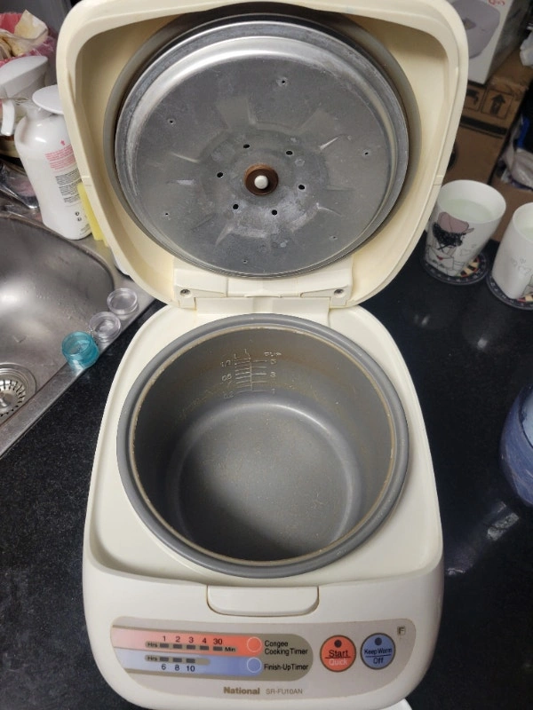 Looks and works like new with brand new measuring cup & rice scoop, scratches on inner bowl coating already reflecting on the low price. Price is firm, no offers, serious buyer and local pickup in Richmond Hill only, please read my full ad and only contact when you are ready to buy. Panasonic SR-DG102 Rice Cooker - 450 W - 1.06 quart - White Prepare up to 5 cups of uncooked rice Microcomputer and advanced Fuzzy Logic continually control and regulate heat for precise cooking and even, delicious results Smart keep warm function maintains optimum serving temperature for up to 12 hours, includes measuring cup and rice scoop Durable diamond fluorine-coated, non-stick inner pan transmits and retains heat in every grain of rice Easily select and set from 5 automatic menu options for a variety of rice, Quick / Slow Cook option, Porridge, Cake, easy to use and read soft-touch buttons