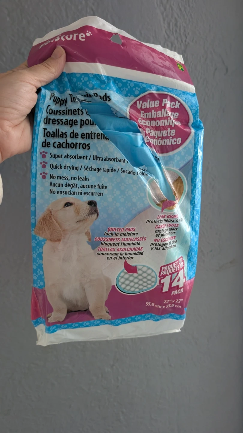 Petstore puppy training pads are super absorbent and quick drying. They offer no mess, no leaks with a leak guard to protect floors. This value pack contains 14 quilted pads measuring 22" x 22".