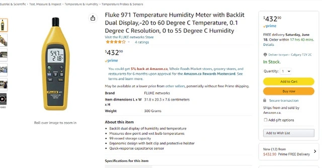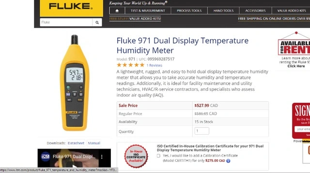 Selling a FLUKE 971 Digital Humidity and Temperature Meter / Tester. Like new condition. Works perfect! Ranges -20C to 60C. 0.1 Degree Resolution 0 - 55 ° Humidity. Retails for around $500. Asking $350 obo. Need gone asap. For Sale By: Owner