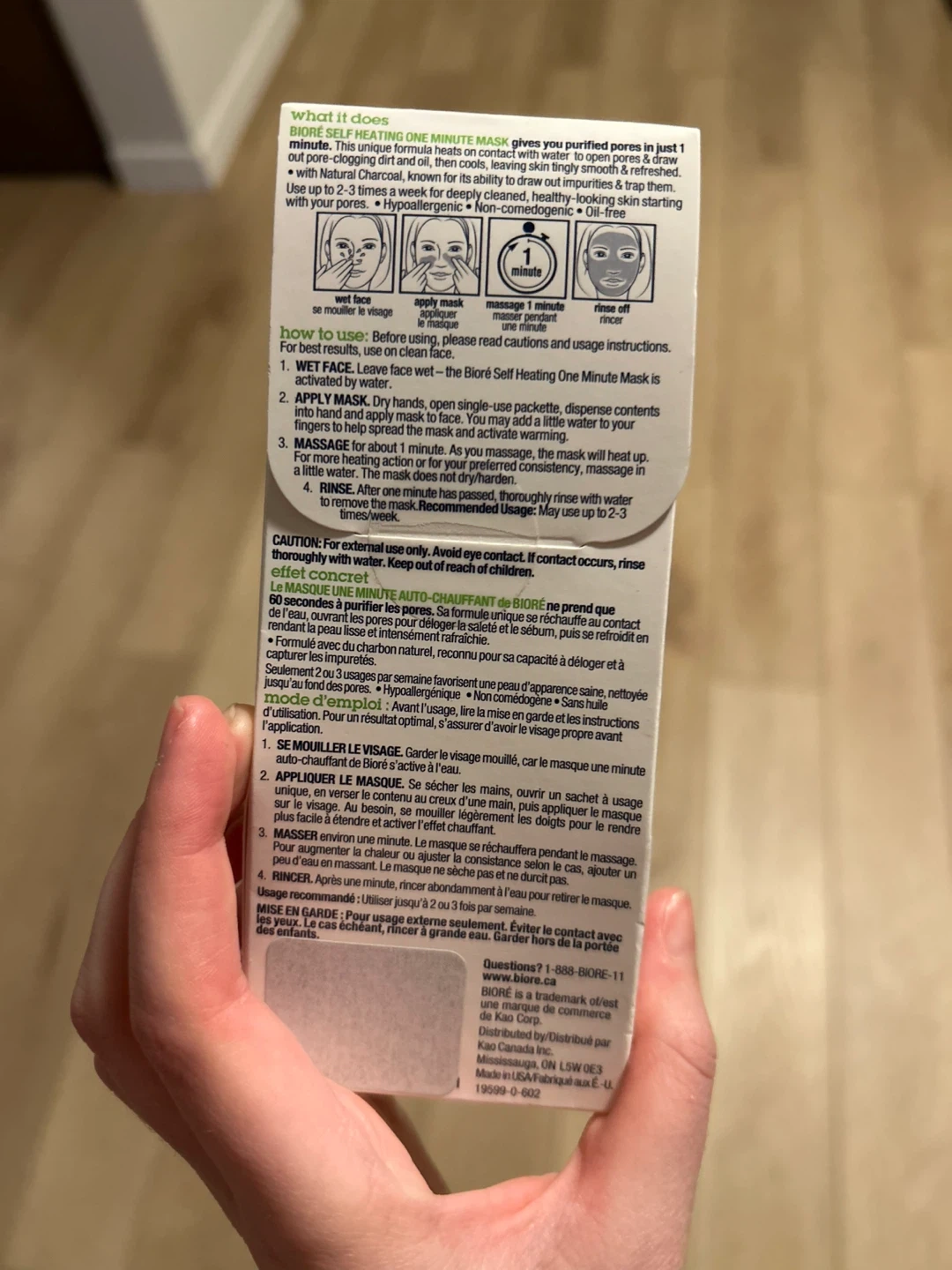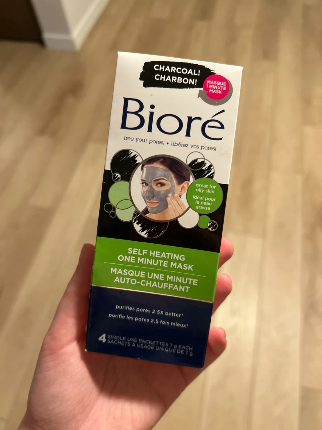 This Biore Self Heating One Minute Mask purifies pores in just 1 minute. Its unique formula features charcoal and heats up to open pores. It purifies pores 2.5x better. Includes 4 single-use sachets, 7g each. Brand new!