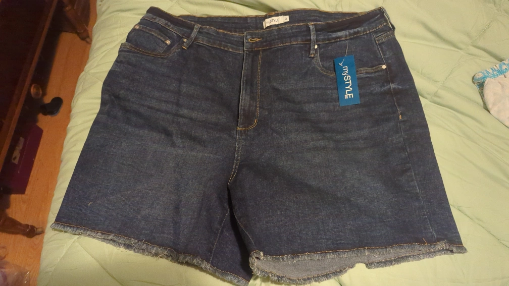I'm selling a pair of Mystyle denim shorts. They're a size 22 and in great condition. Perfect for a casual summer look!