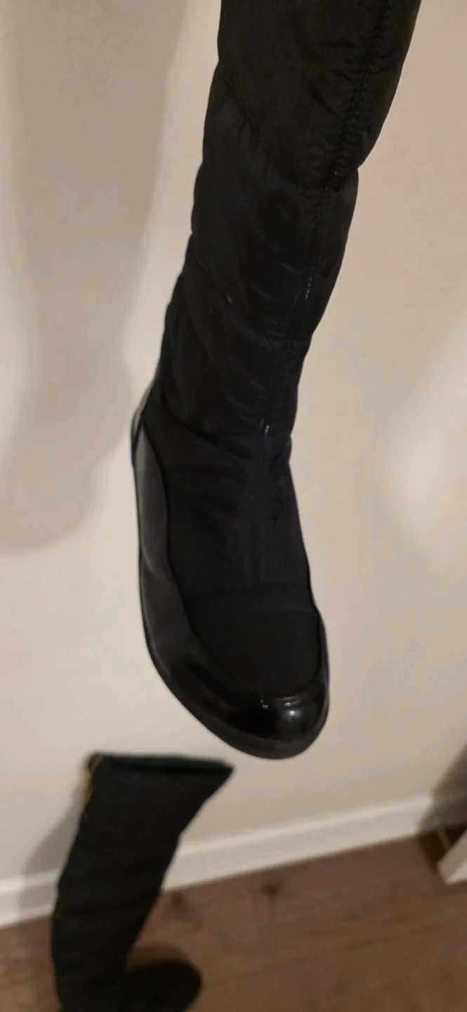 Winter boots/ Black Puffer Knee-High Boots with Patent Toe