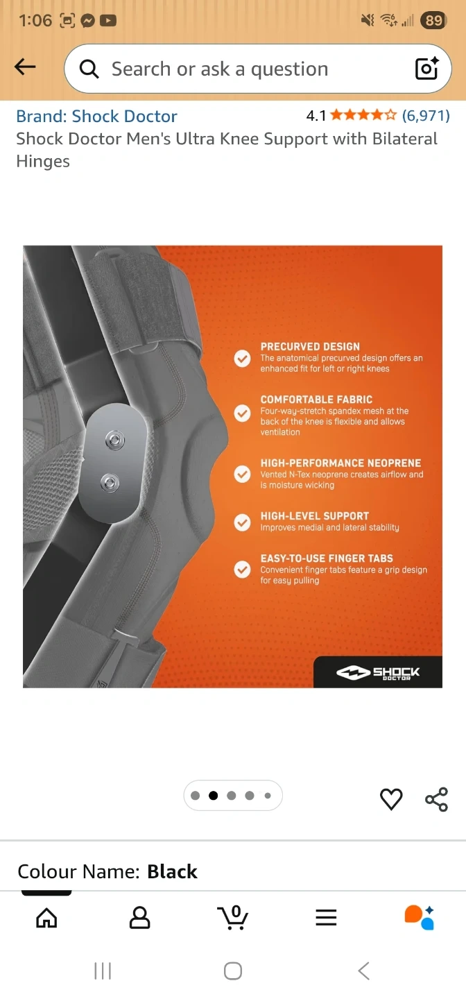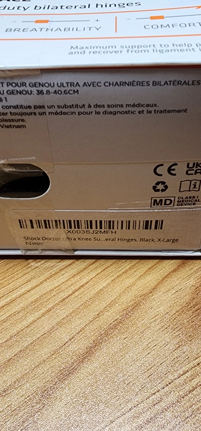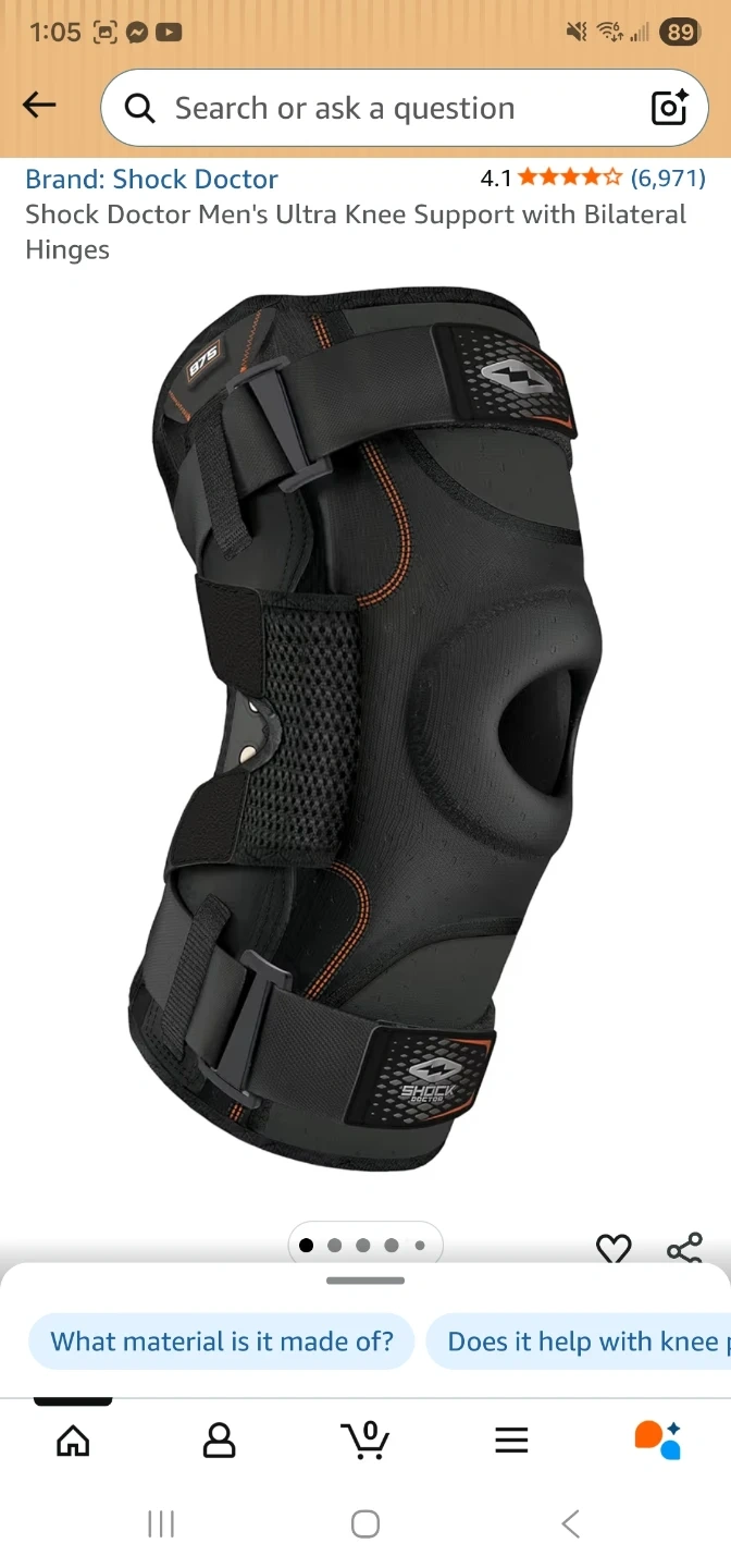 This is a Shock Doctor Ultra Knee Support brace in black, size X-Large. It features bilateral hinges for support and is made of comfortable, high-performance neoprene. It has easy-to-use finger tabs for pulling it on. This brace offers maximum support to help prevent and recover from ligament injuries.