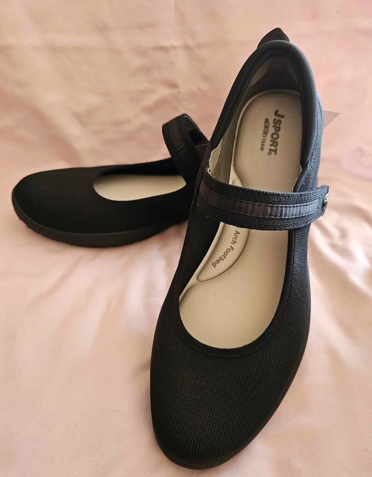 BNIB J SPORT Black Mary Jane Flats Shoes 10M Memory Foam