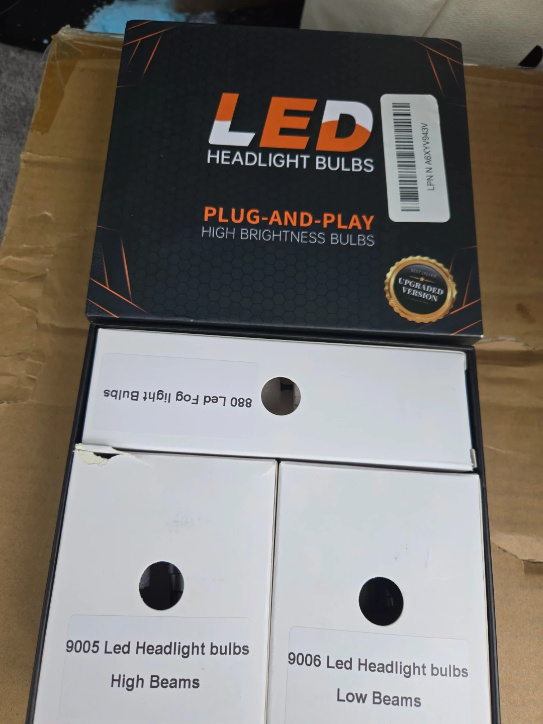 This is a 6-pack of SPRBTBUB brand LED headlight and fog light bulbs. Includes 9005 High Beam, 9006 Low Beam, and 880 Fog Light bulbs. They're a plug-and-play, high brightness upgraded version.