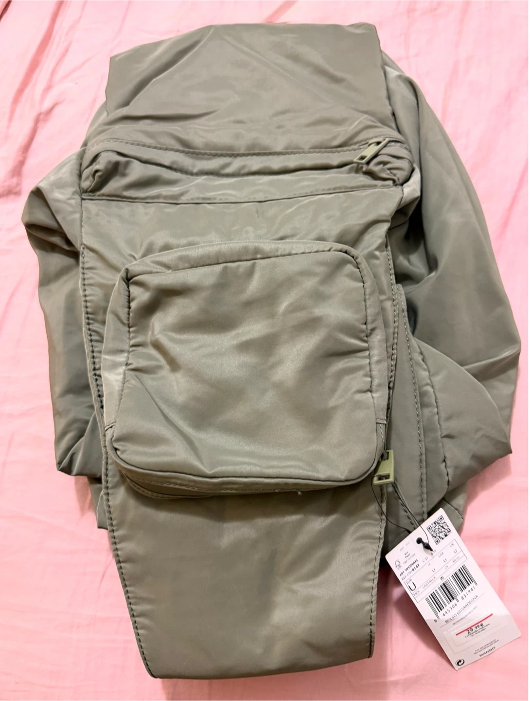 This is a MANGO 601 WOMAN shoulder bag in olive green. It's a versatile piece with multiple pockets and adjustable straps. It's perfect for everyday use, carrying your essentials comfortably. The last two picture is just to show the style. The bag itself is in sage green just like the photos.