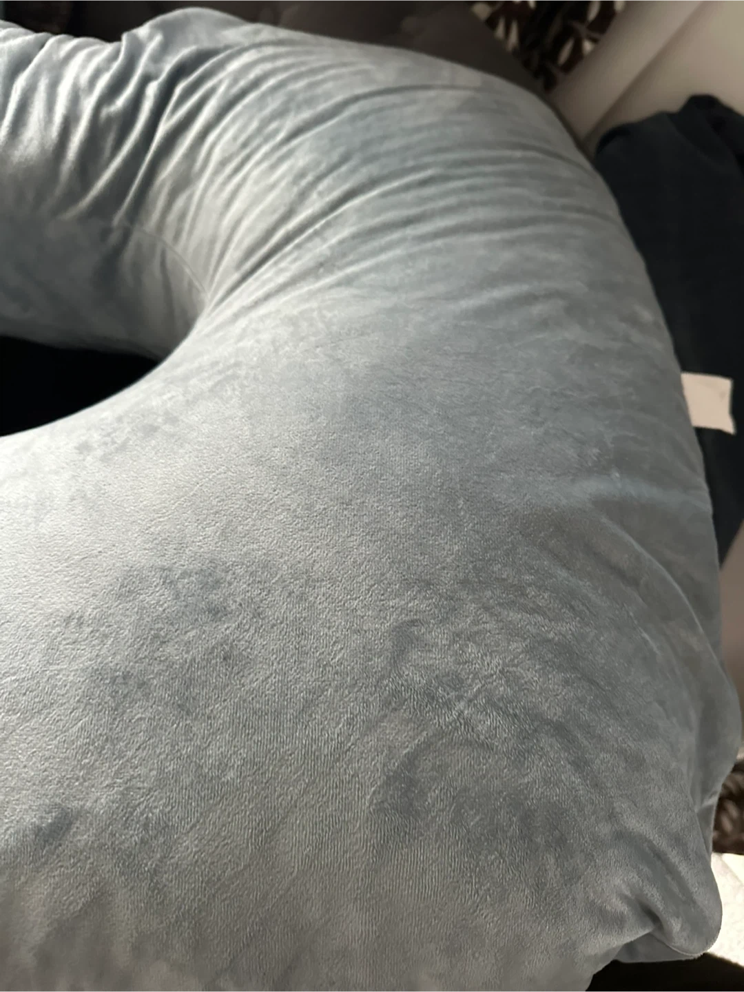 This U-shaped pillow from Living Basics offers full body support. It's covered in a soft, plush fabric for comfort. This pillow is great for nursing, maternity support, or general relaxation.