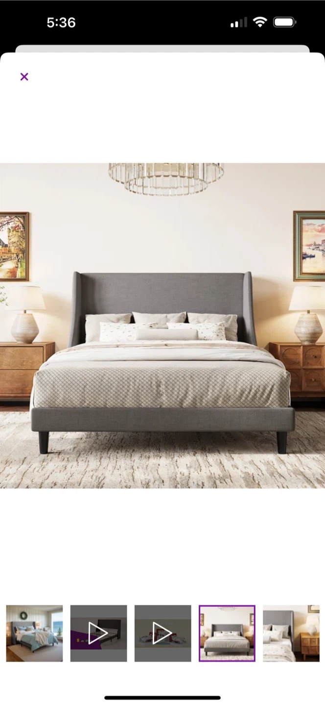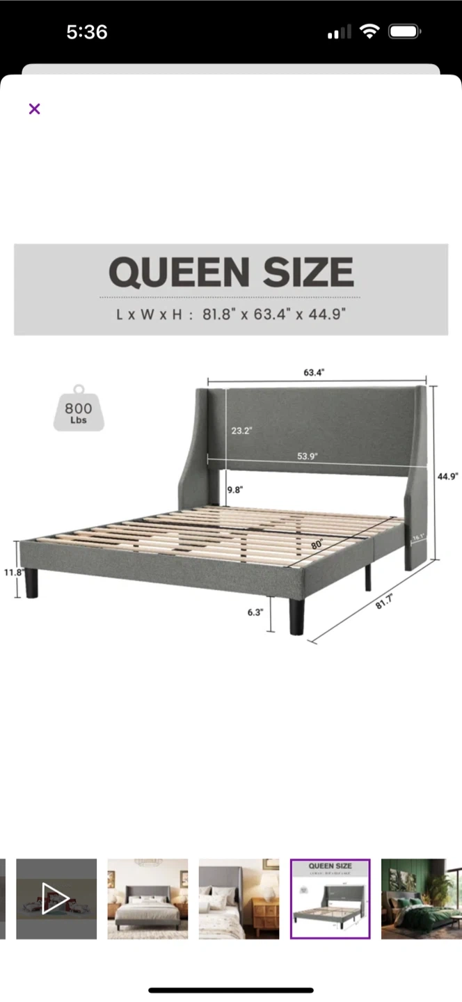 Queen Size Upholstered Platform Bed Frame with Headboard