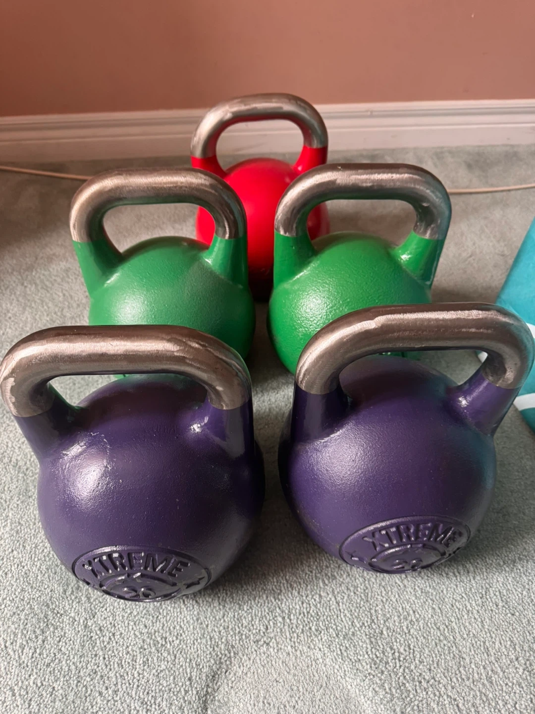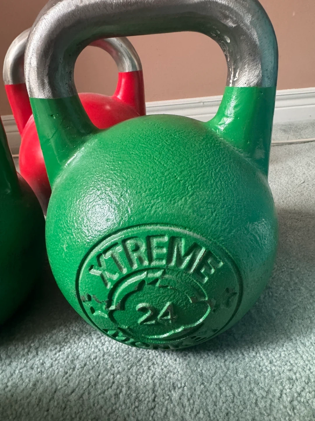 Set of Xtreme Monkey kettlebells including a 20kg, 24kg, and 32kg weight. These kettlebells are great for a variety of strength and conditioning exercises. They have a durable cast iron construction and a comfortable grip handle.