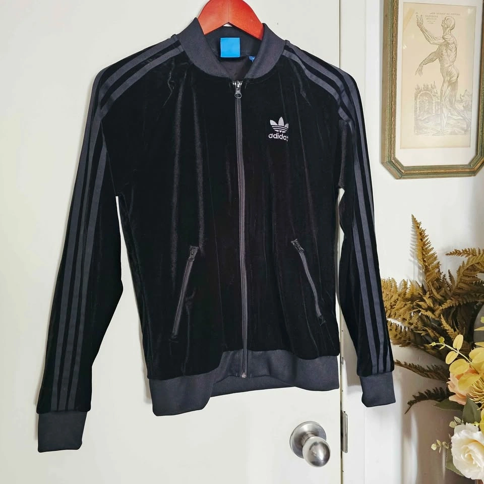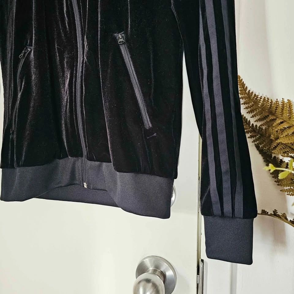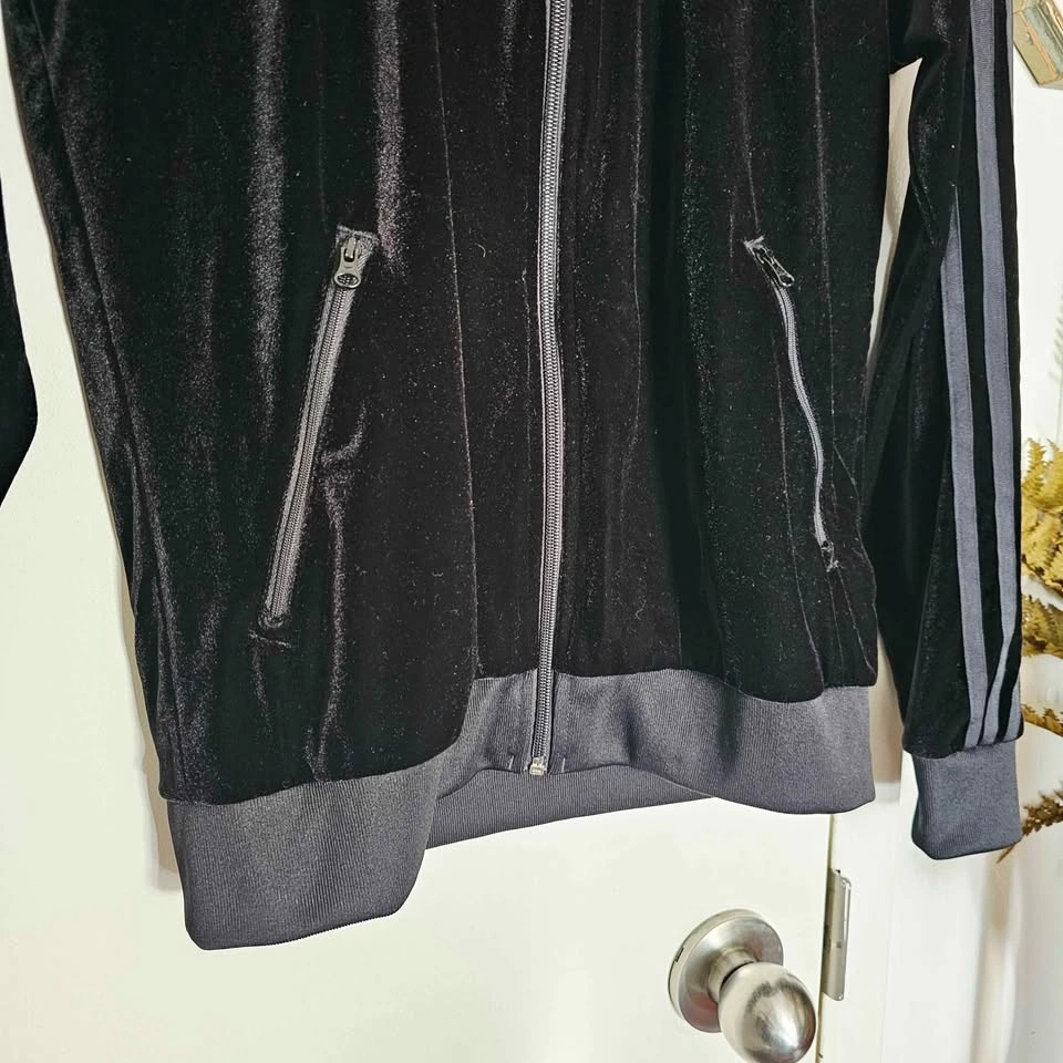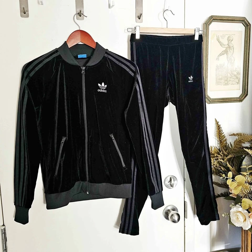 Adidas Black Velvet Velour Tracksuit Set - Size Small