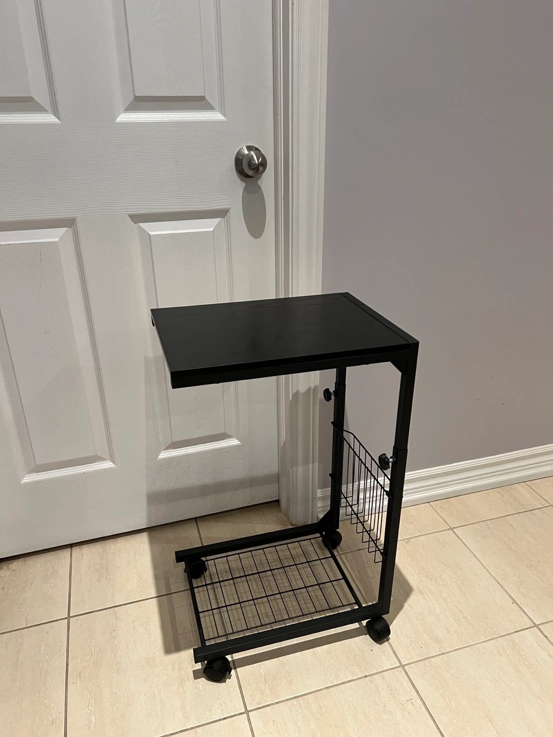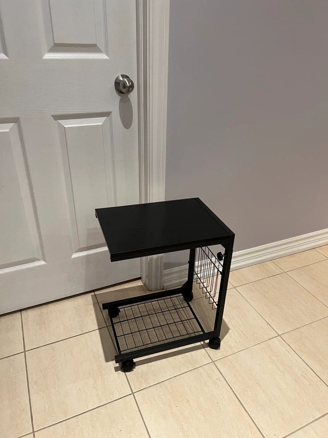 Black Rolling Side Table with Magazine Rack