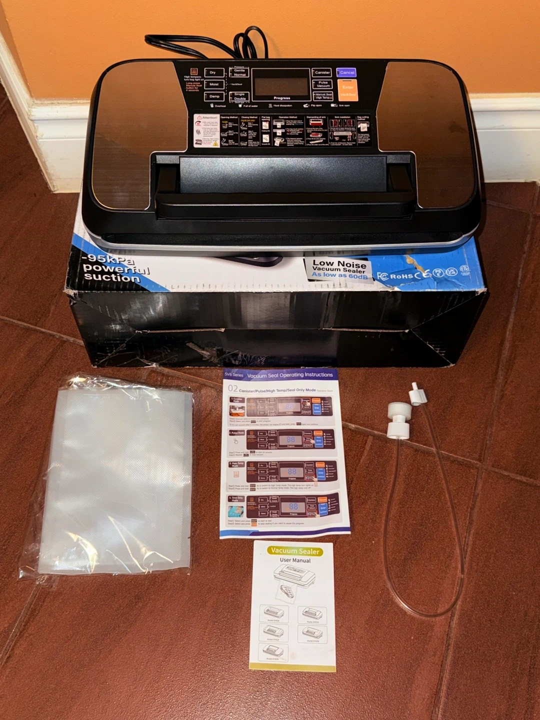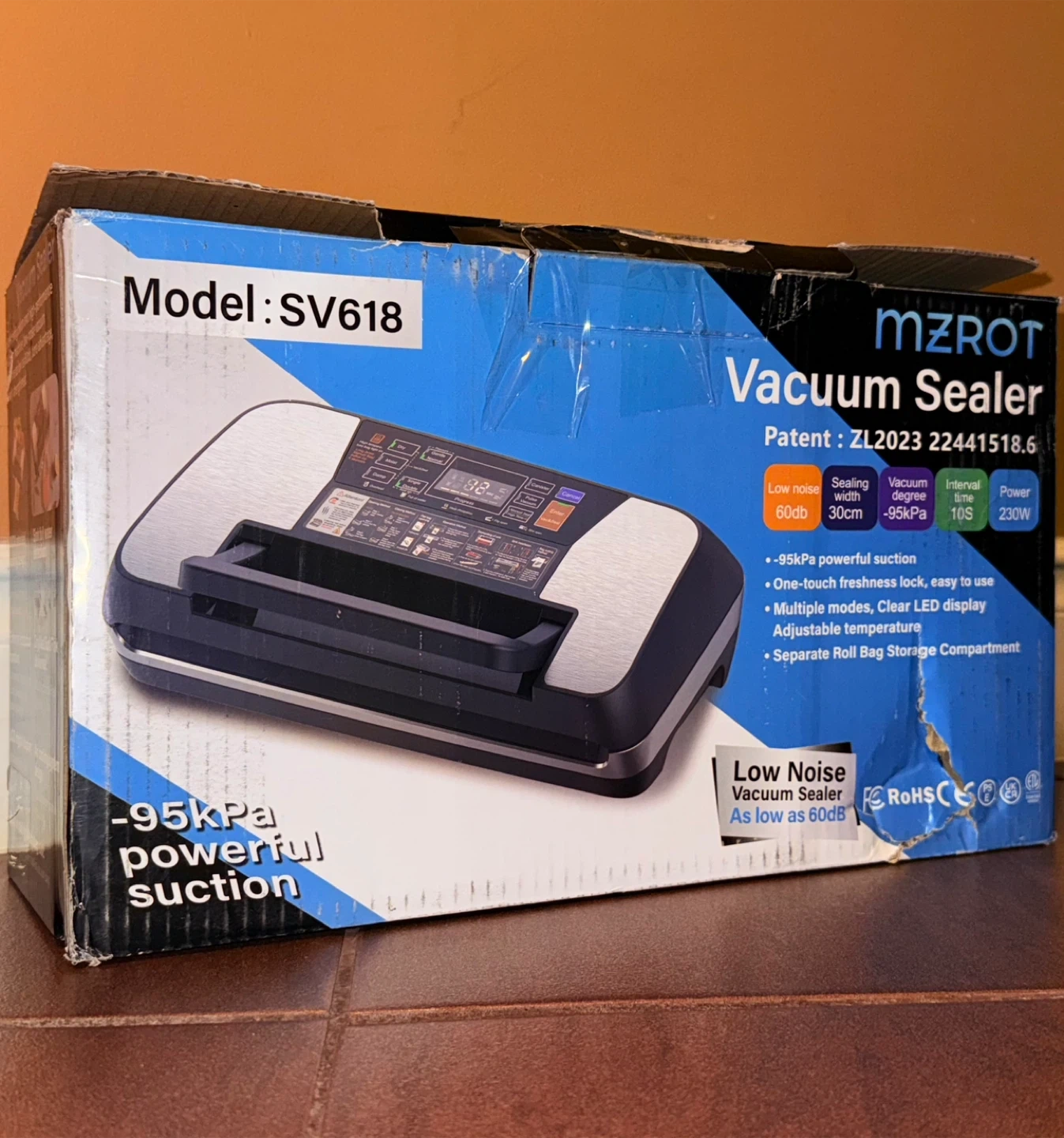 23Selling a MZROT Vacuum Sealer, model SV618! This vacuum sealer features -95kPa powerful suction and operates with low noise, as low as 60dB. It has multiple modes with a clear LED display and adjustable temperature. Key features include: - One-touch freshness lock - Separate roll bag storage compartment - Compact size to save more countertop space It comes with a user manual and some vacuum bags! Brand new