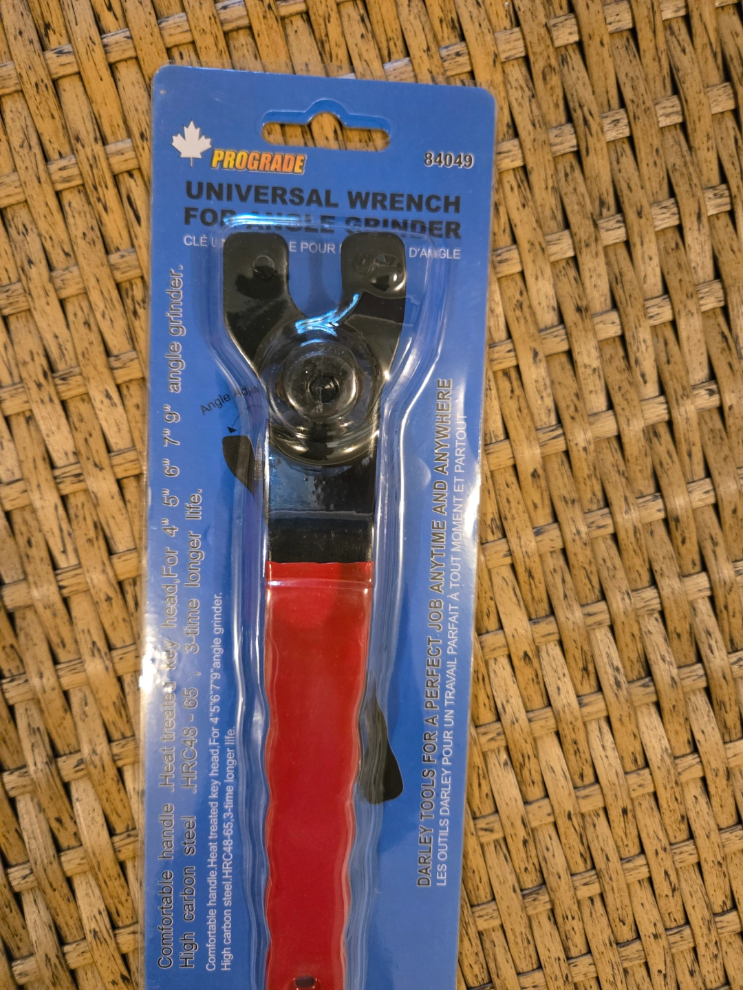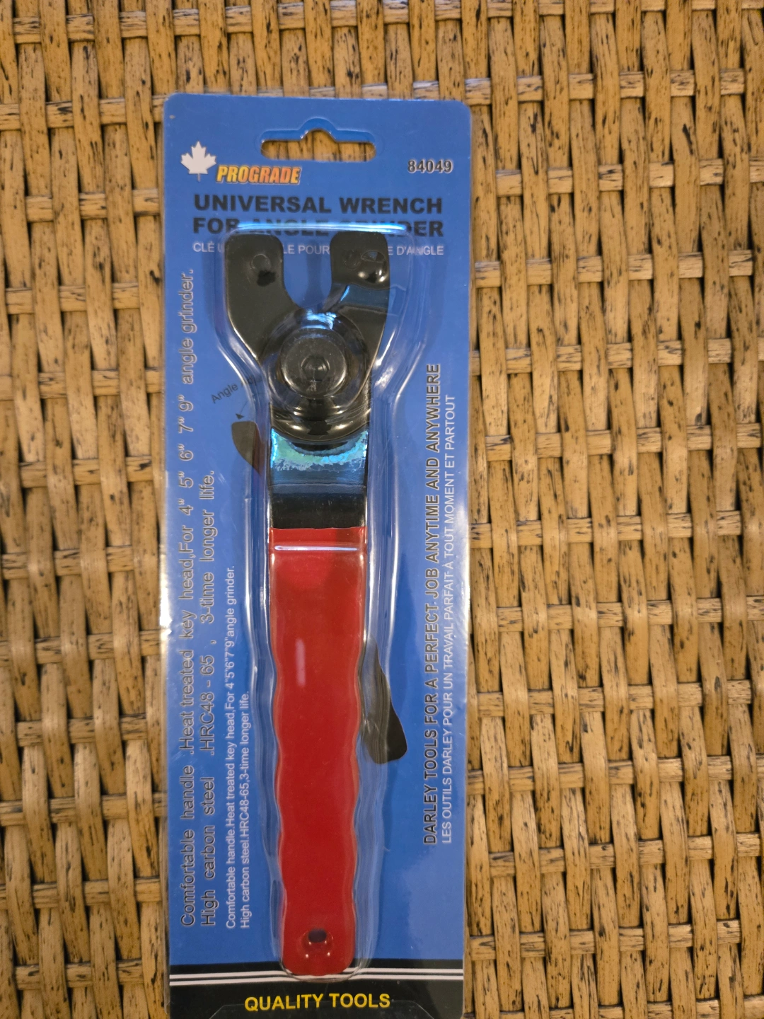 New universal wrench for angle grinders. Fits 4", 5", 6", 7" angle grinders. Comfortable handle. High carbon steel. Lasts longer.