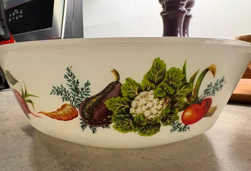 1970βs JAJ Pyrex (UK) 10β casserole dish "Market Garden" π₯