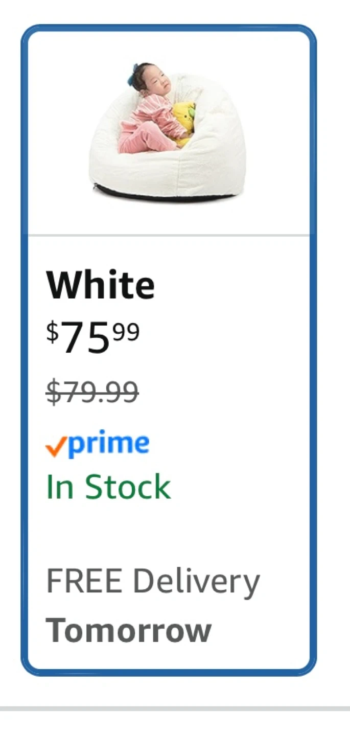 Snuggle up in this cozy N&V small bean bag chair! It's perfect for kids and features a soft faux fur cover that's removable and machine washable. The chair is filled with foam for extra comfort. Originally bought for $75.99!