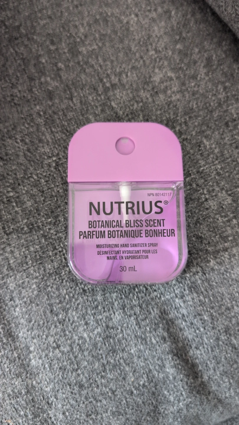 This Nutrius hand sanitizer spray comes in a 30ml bottle with a Botanical Bliss scent. It contains 70% Ethyl alcohol for effective sanitization. Apply liberally over all hand surfaces and rub thoroughly until dry.