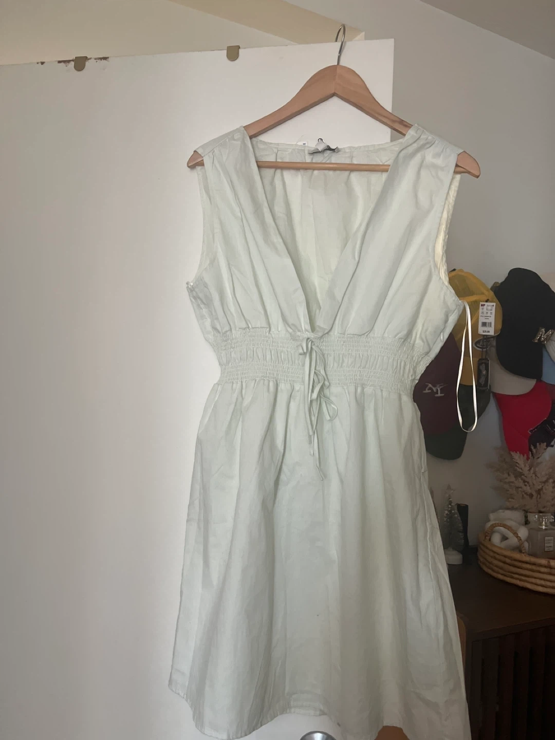 Light Green Sleeveless V-Neck Smocked Waist Dress