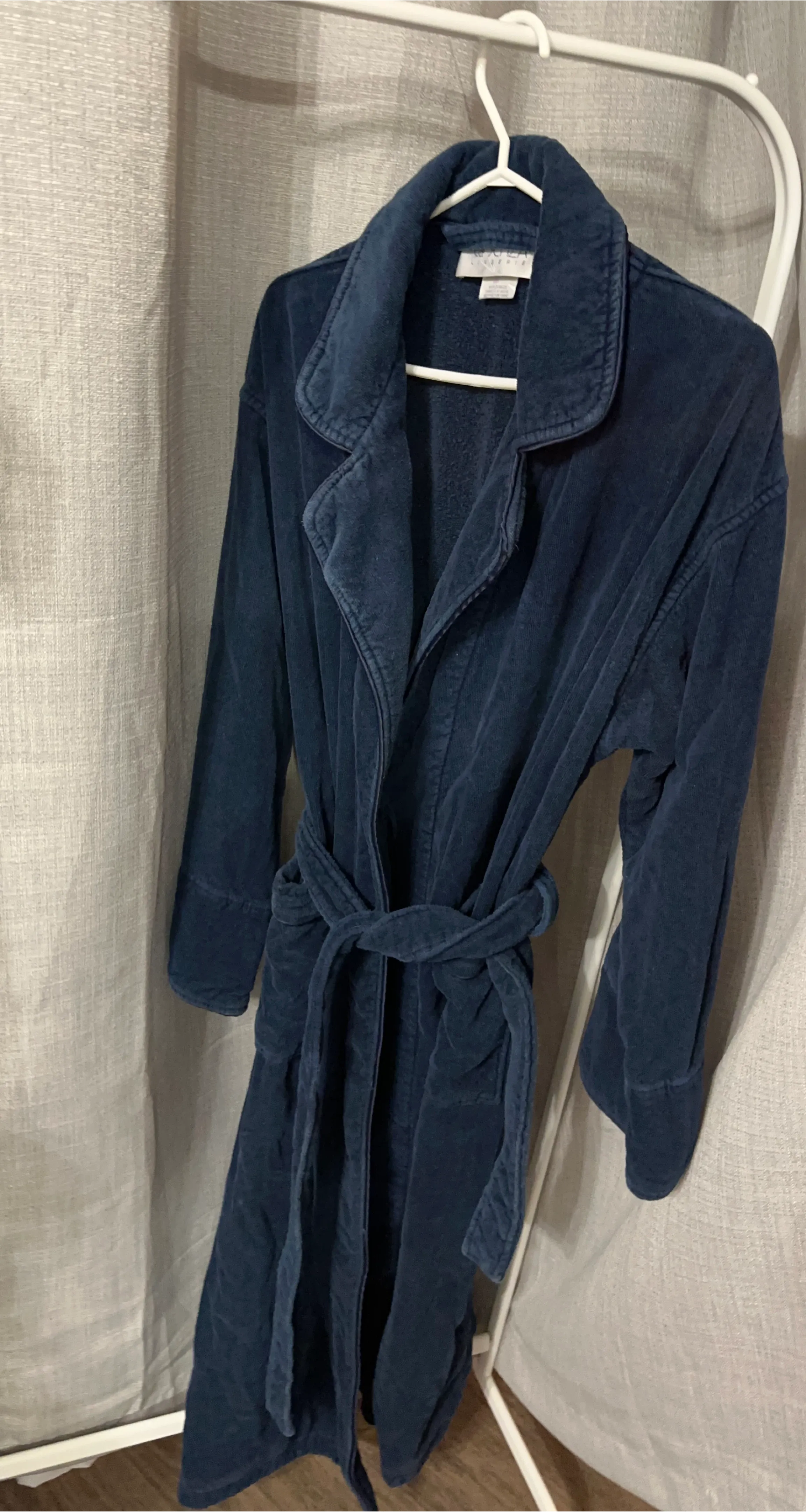 Cozy blue robe from La Senza! It's in great condition and perfect for lounging around the house. The material is soft and comfortable, making it ideal for cooler evenings. It features a classic design with a tie waist