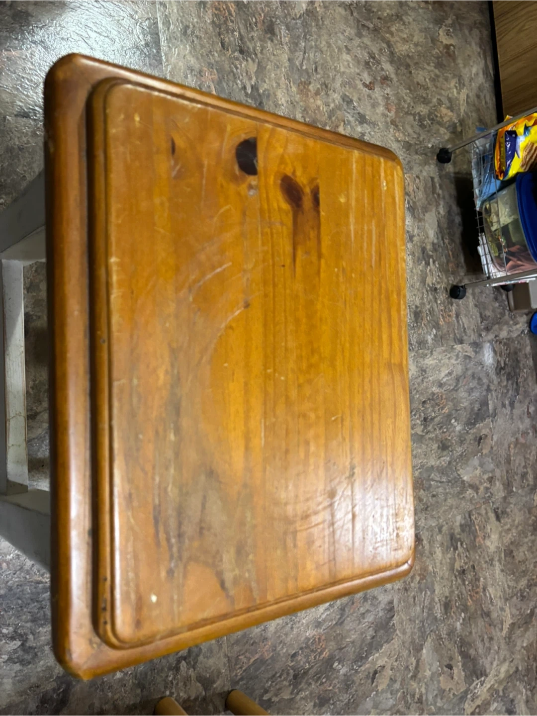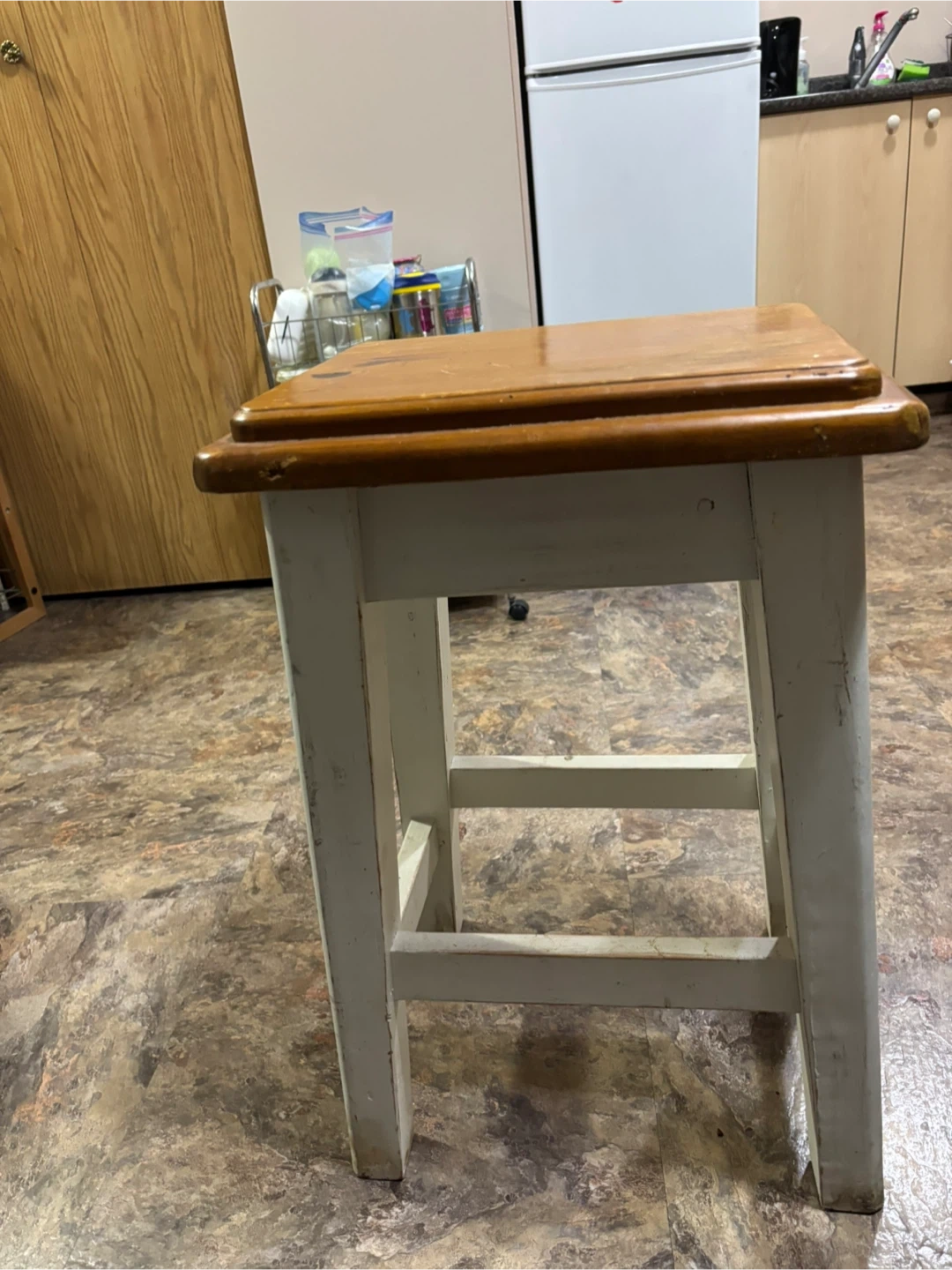 This is a sturdy wooden bar stool with a natural wood seat and a white base. It's perfect for a kitchen counter or bar area. Measures 60 cm tall 30 x 40 cm wide