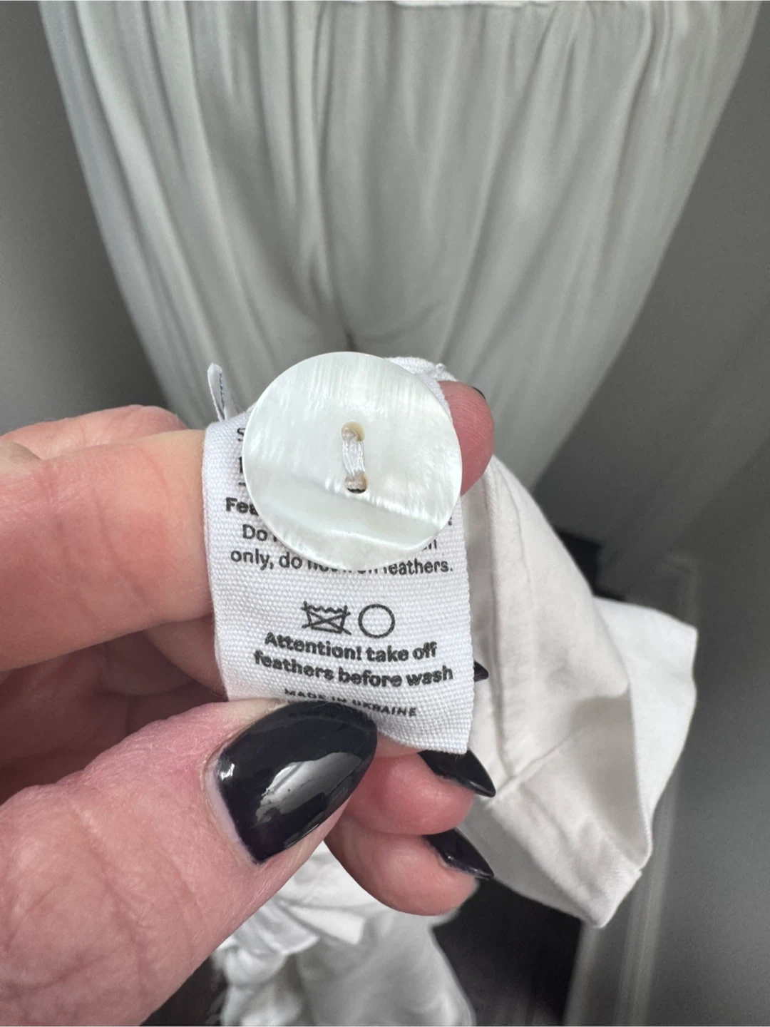 Luxurious white pajama set by Sleeper. It features a classic button-up shirt and matching pants. The cuffs and hem are adorned with soft feather trim. This set offers comfort and style for lounging. Never worn.