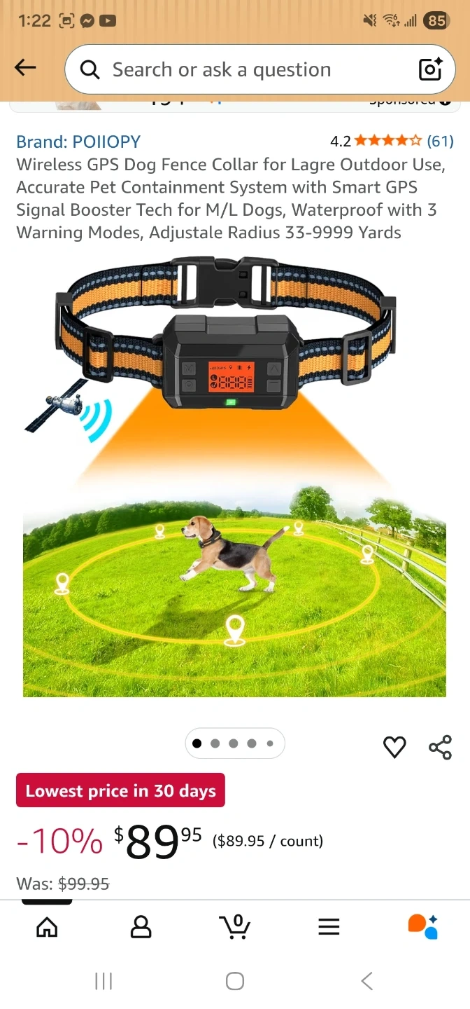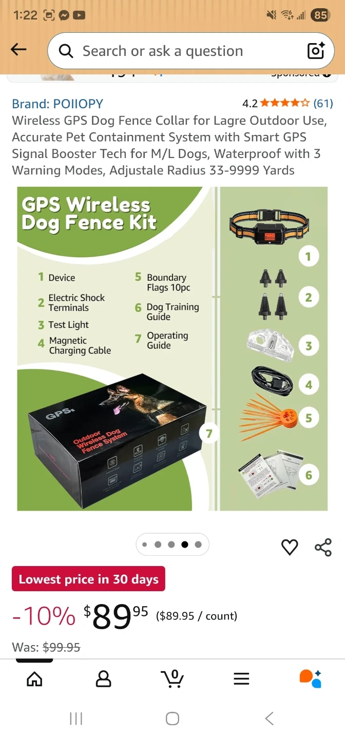 This wireless GPS dog fence system comes with a collar and training flags. It's waterproof and features adjustable radius settings. The collar fits neck sizes from 8 to 26 inches.